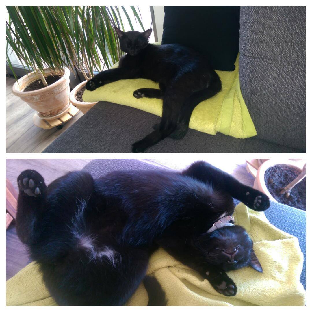 Ahoj Sluníčko, posílám aktuální hlášení o naší Fay (Fejince, Micince, Mifince). Po více jak čtyřech měsících, ji celý dům patří, ač má pelíšek, nejradši má na spaní parapet, postel, květináč a gauč😀 je to naše láska, nosí nám mysicky (od doby, co máme Fay, máme plný dům myši 😂), třeba i v noci do postele, asi vypadám hladove. Co se týká stravy, konzervy a kapsičky neprochazi, jen maso a granulky. 👍🏼 Sousedovic kocoura naučila lovit myši, sousedka má radost.😝 … nedávno se mi udělalo hodně špatně, okamžitě přiběhla, skočila mi na prsa a křičela, aby přivolala pomoc… hlídala mě, až se mi udělalo lépe. ❤️ každý den s Fay je jiný, plný lásky a srandy. Jo, ještě bych zapomněla, bohužel jsme udělali výchovou chybu, když poprvé přišla mokrá od deště, ususili jsme ji ručníkem, od té doby vždy sušení vyžaduje.😵 … potvora chlupatá