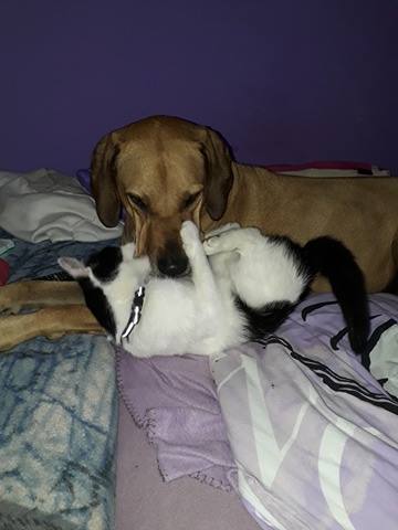 Ferda po dlouhe dobe zdravi z noveho domova. Uz je to rok a ctvrt co jsem si ho od Vas privezla… Za tu dobu ziskal kamaradku fenku Roxy a agamky…. V noci chodi ven a jelikoz bydlime u silnice vyfasoval novy modni doplnek v podobe odrazkoveho obojku… Basti nejradeji Gourmetky ale ani granulkami nepohrdne. Vzdycky se vratil a vraci… 🙂 mame ho moc radi…