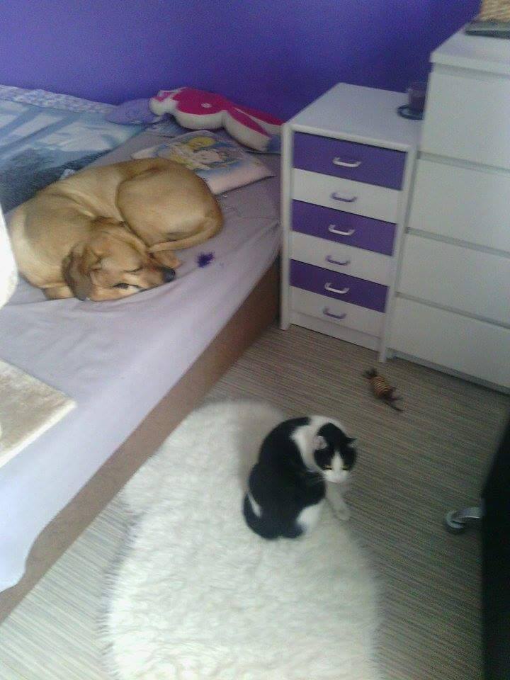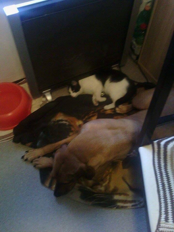 Zdravime do Slunicka, Ferdik opet zdravi… dostal uhackovany pelisek, chodi casto na pole chytat mysi nebo se jen tak podivat co je kde noveho… je to mazel:-) s kamaradkou Roxy ridgebackem nejvetsi kamaradi… lehavaji spolu u topeni…
