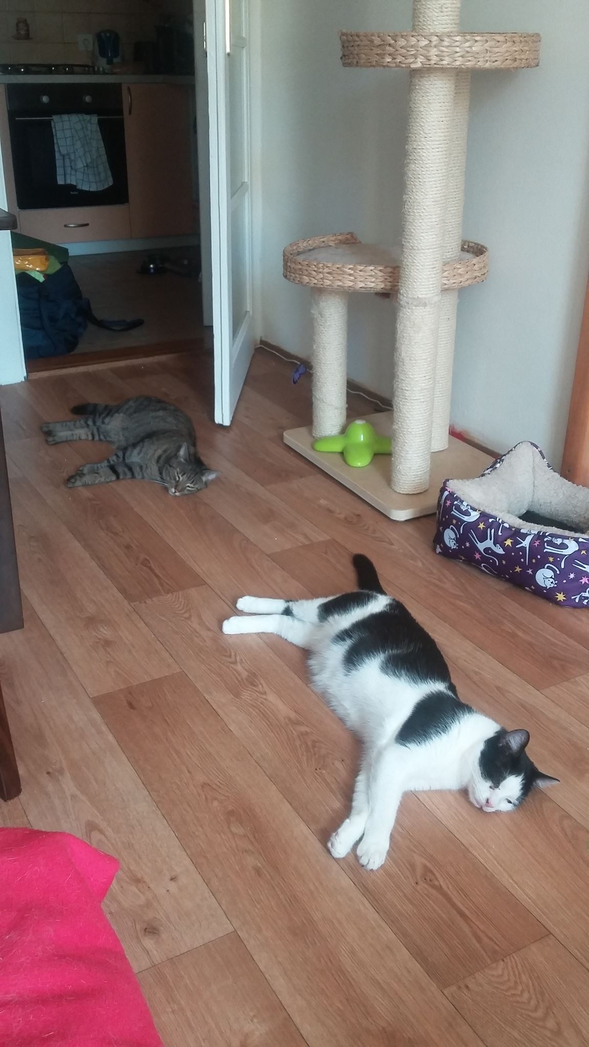 Dobrý den do Sluníčka, po delší odmlce se Vám opět ozýváme s novinkami ze společného soužití s naší malou demoliční četou. Fidoušek, kterého jsme si od vás adoptovali v polovině dubna, je u nás doma již plně zabydlen a s Charliem řádí jako černá ruka. Je nesmírně hodný a vděčný za jakékoliv pohlazení, neustále vrní jako motůrek a přijde mi šťastný. Papá neskutečně moc, už má pět kilo a musím se přiznat, že jsme ho dost vykrmili, má takový pěkný pupíček. S očičkem je to nahoru dolů, někdy mu neteče vůbec, jindy celý den – zase s ním půjdeme na kontrolu. Druhý kocourek Charlie se sice tváří, jak ho má na háku a jak doma všechno (včetně nás) šéfuje on, nicméně v bitkách pokaždé navrch tedy nemá a někdy během nich vlastně neví, jestli se má prát, nebo Fidouška umýt 🙂 Vzhledem k faktu, že demoliční četa je neustále v pohybu, není úplně jednoduché udělat nějakou „normální“ fotku, takže jsem vybrala alespoň tři. Na té první sice vypadají jako v objetí, nicméně nenechte se oklamat – foceno uprostřed bitky, kdy se zrovna vymýšlela další taktika v boji 🙂 Druhá fotka je z parapetu na okně, kde oba moc rádi tráví čas, loví hmyz (který následně pouští po celém bytě samozřejmě) a pozorují ptáčky (ty naštěstí přes sítě ulovit nemohou). Třetí fotka je pořízena v době úmorných veder, kdy oba kluci „upadli“ uprostřed pokoje. Mějte se moc krásně, zdravíme všechna Sluníčka a doufáme, že všichni brzy naleznou šťastný domov. Petra a Tomáš
