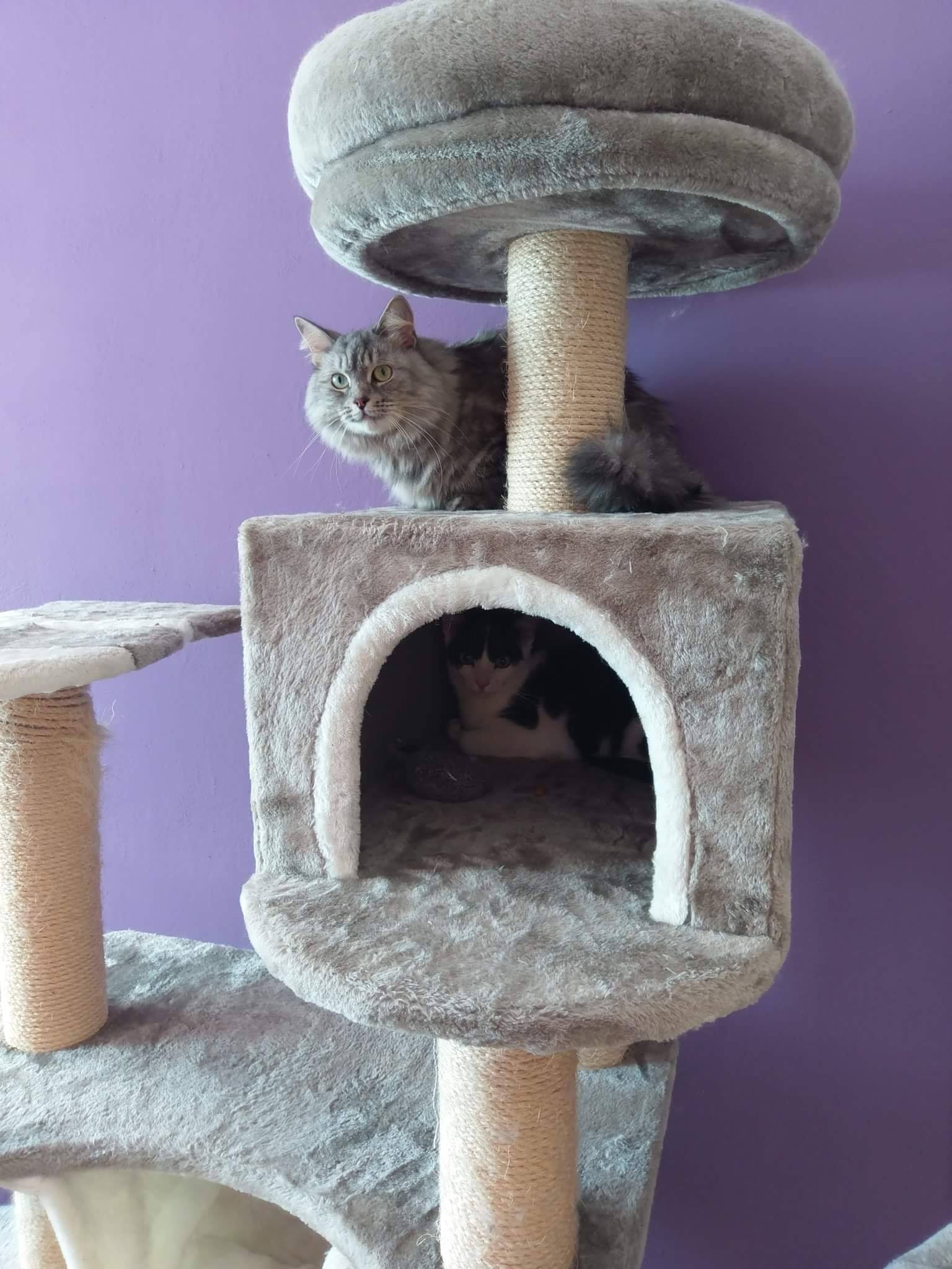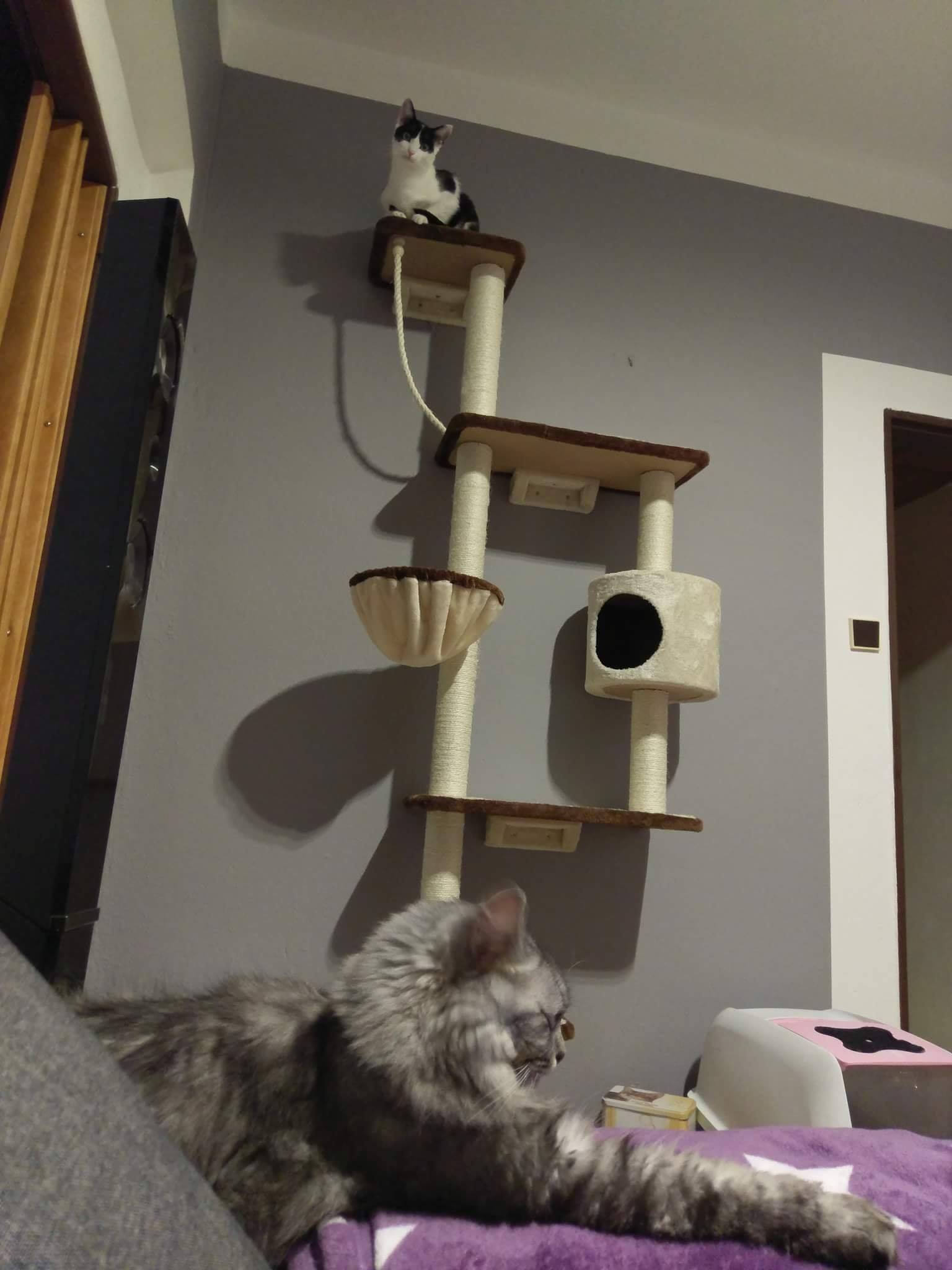 Dnes je to cca dva tydny, co je tu oba mam.. Misky vzdy vyjedi tak, ze je snad nemusim ani mejt.. Vsude mi delaki spolecnost a miluji cely byt.. Vsude lezou a skacou, spinkali snad uz na kazdem miste.. Poridila jsem jim i jedno nove skrabadlo..
