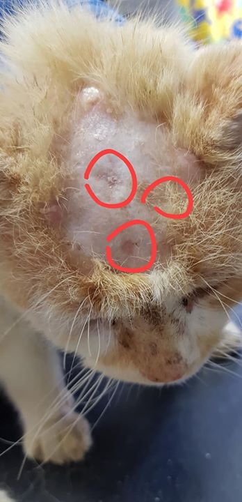 -rány na hlavě jsou s největší pravděpodobností po diabolkach, asi sloužil jako cvičný terč, jednu si bude nosit „na památku“ do smrti v kožichu, nijak mu nevadí,