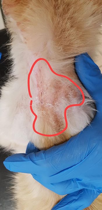 – zjizvena tkáň je důsledek většího poranění kůže že rvačky, od psa nebo od horké vody či jiné nepříjemné látky, pro tuto variantu hovoří i rozmístění zjizvene tkáně