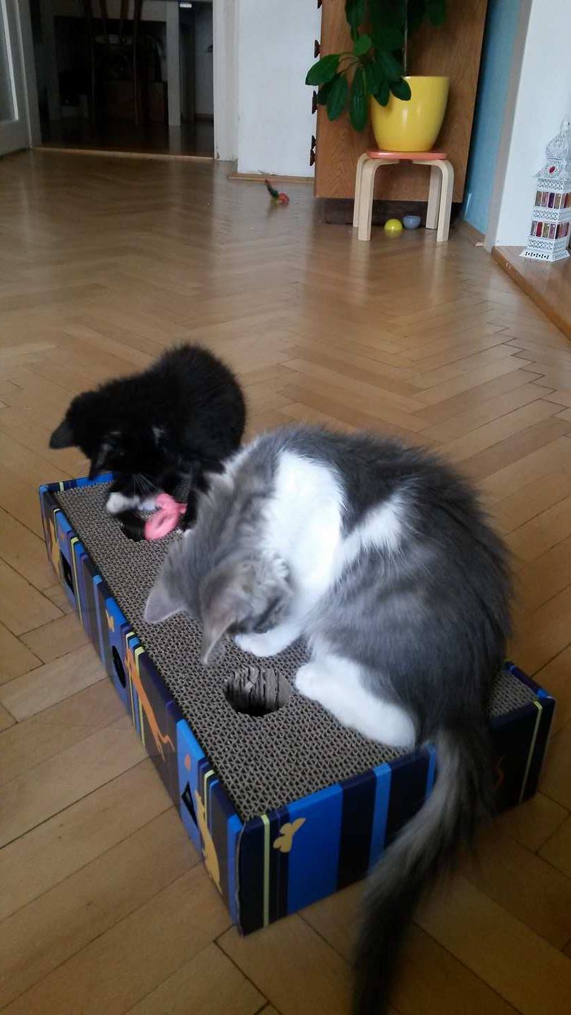 Po 4 dnech v novem domove jsou jak Goofik a Fialka hezky zabydleni, pekne spolu radi, dost spinkaji a papaji.. kazdy den neco objevi na hrani a zkouseji ruzna mista na spinkani. Casto spolu spinkaji v proutene kukani a jsou mega roztomili! 😍