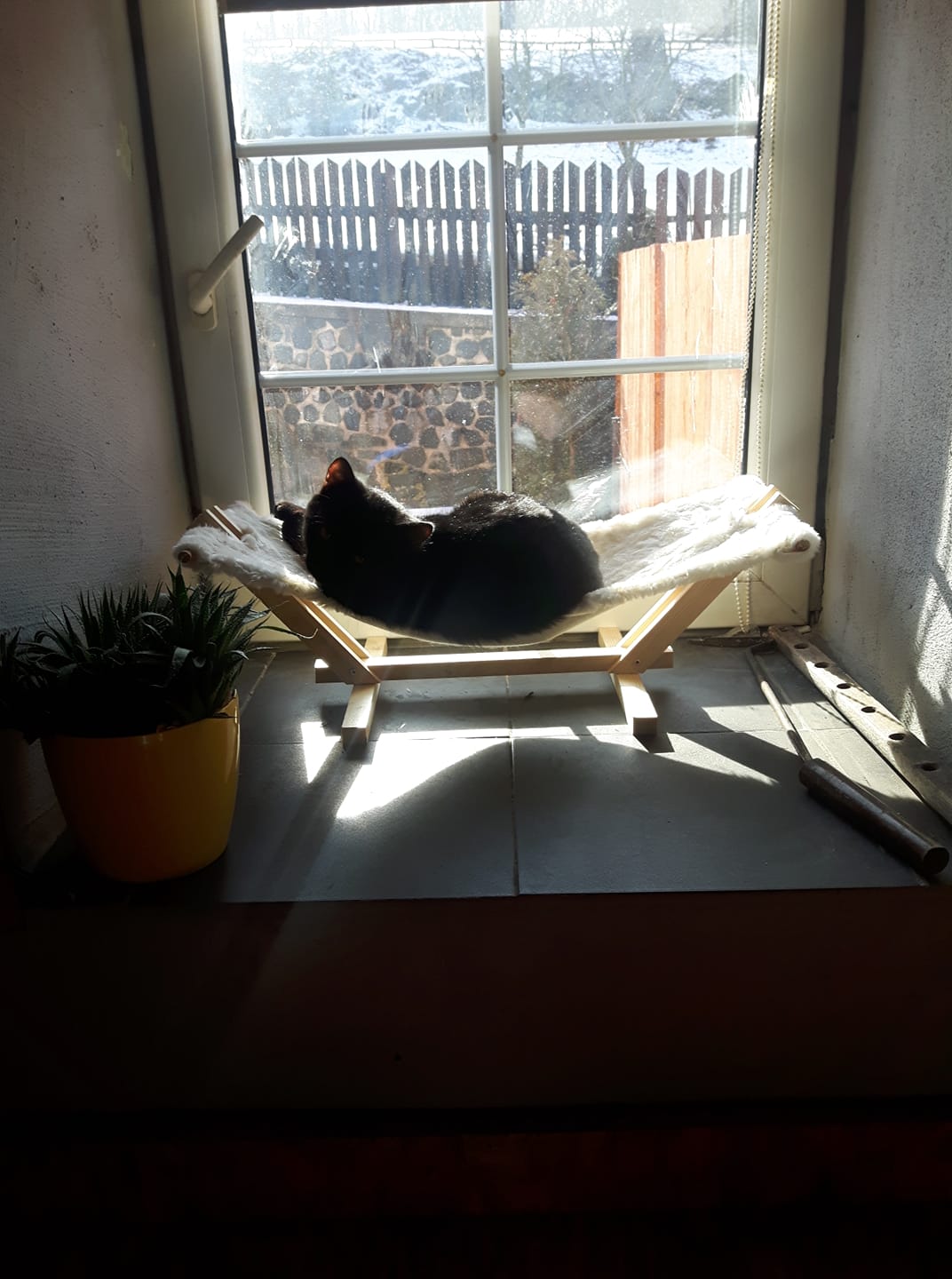 Kocourek se už jmenuje Mourek a je u nás moc spokojený. Chutná mu úplně vše. Skamarádil se i s naším králíčkem a nejraději si lebedí ve své houpačce na okně nebo se rozvaluje v pelíšku.