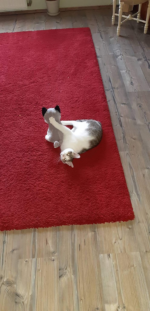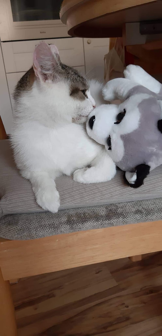 HAŠIŠKOVI SE V NOVÉM MOC LÍBÍ ❤️ ▪️Posíláme pozdrav od Háši a jeho plyšového kamaráda. Je to roztomilý lumpík, který se nejraději pere s mojí rukou🐱♥️