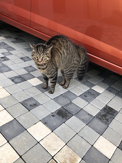 Mourovatá evropská krátkosrstá, v dobrém vyzivnem stavu, váží cca 5 kg. Je ji 6 let, kastrovana a má čip. Slyší na jméno Helya (Helga). Měla na sobě růžový obojek bez rolničky.