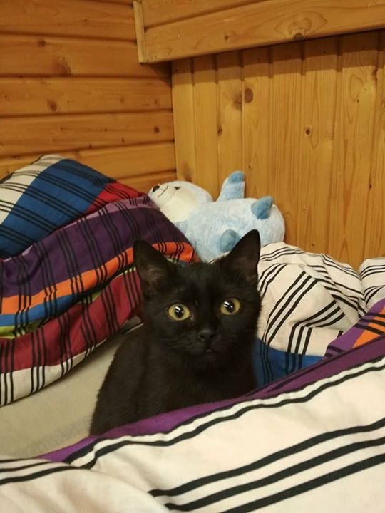 Je to malý mazlivý klubíčko. Ráda se válí v posteli a nebo ve svém oranžovém pelíšku, loví myš na udici a nebo i běhá za peříčkem.