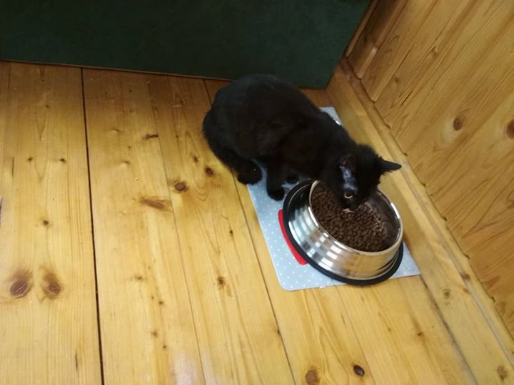 Miluje kočičí konzervy „Gourmet“ ale i granule jí poctivě. Taky když se jí snažíme naučit aby poslouchala (alespoň trochu) tak dostává odměnu. Avšak nikdy si jídlo nebo pamlsek nechce vzít přímo z ruky. Vždy se začne jen o ruku otírat a sní to až potom, co to dostane do misky.