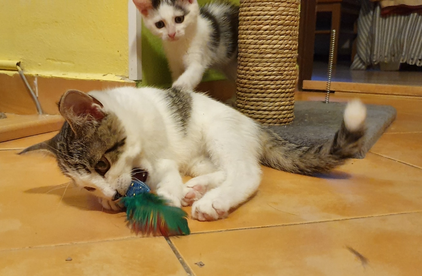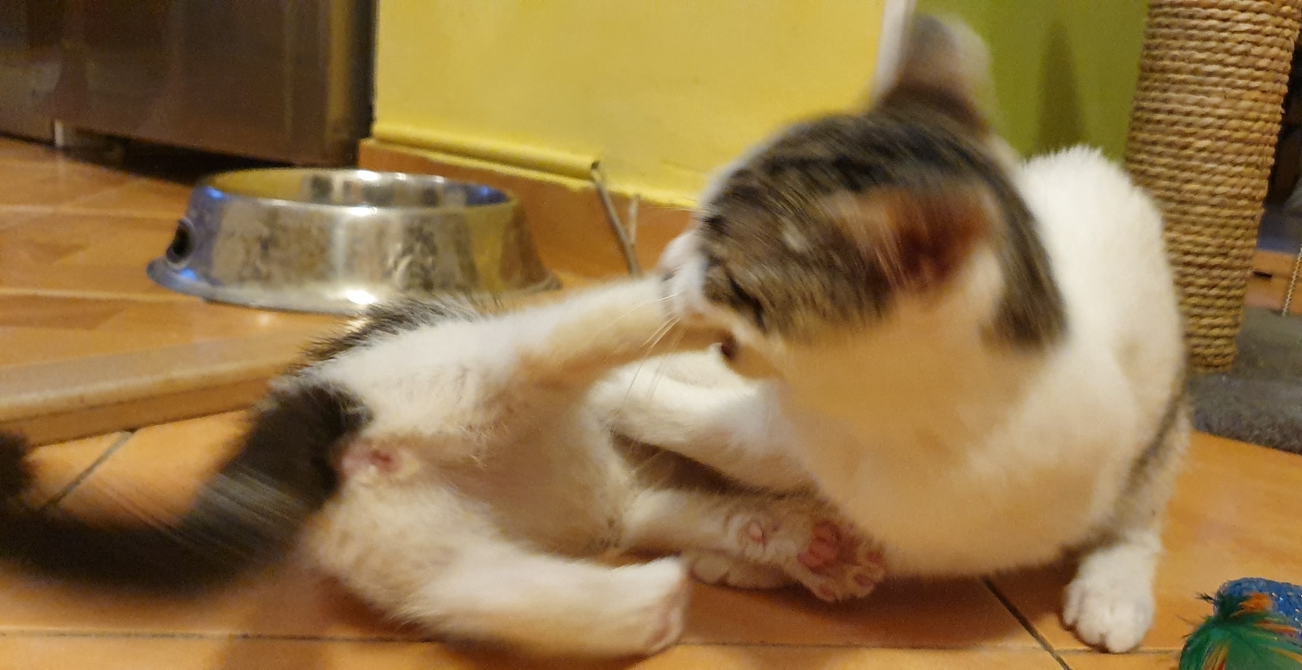 🔸 Nejprve si s myškou hrála BOCHANKA, pak ji vystřídala ČESNEČKA.🔸 No a pak si chtěly holky hrát se stejnou myškou obě naráz. Zkončilo to rvačkou, kvílením a úprkem pod postel a stůl 😺.