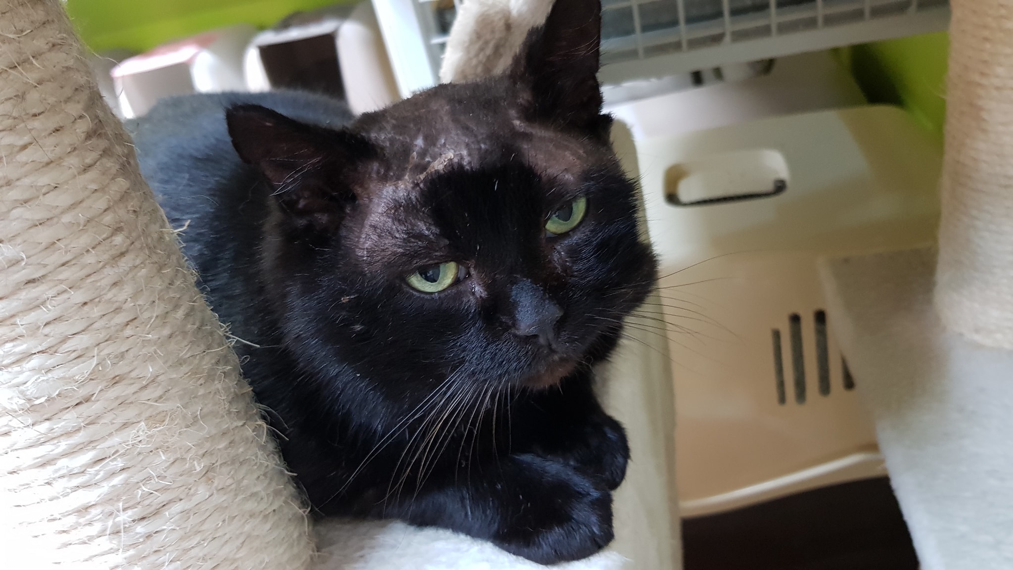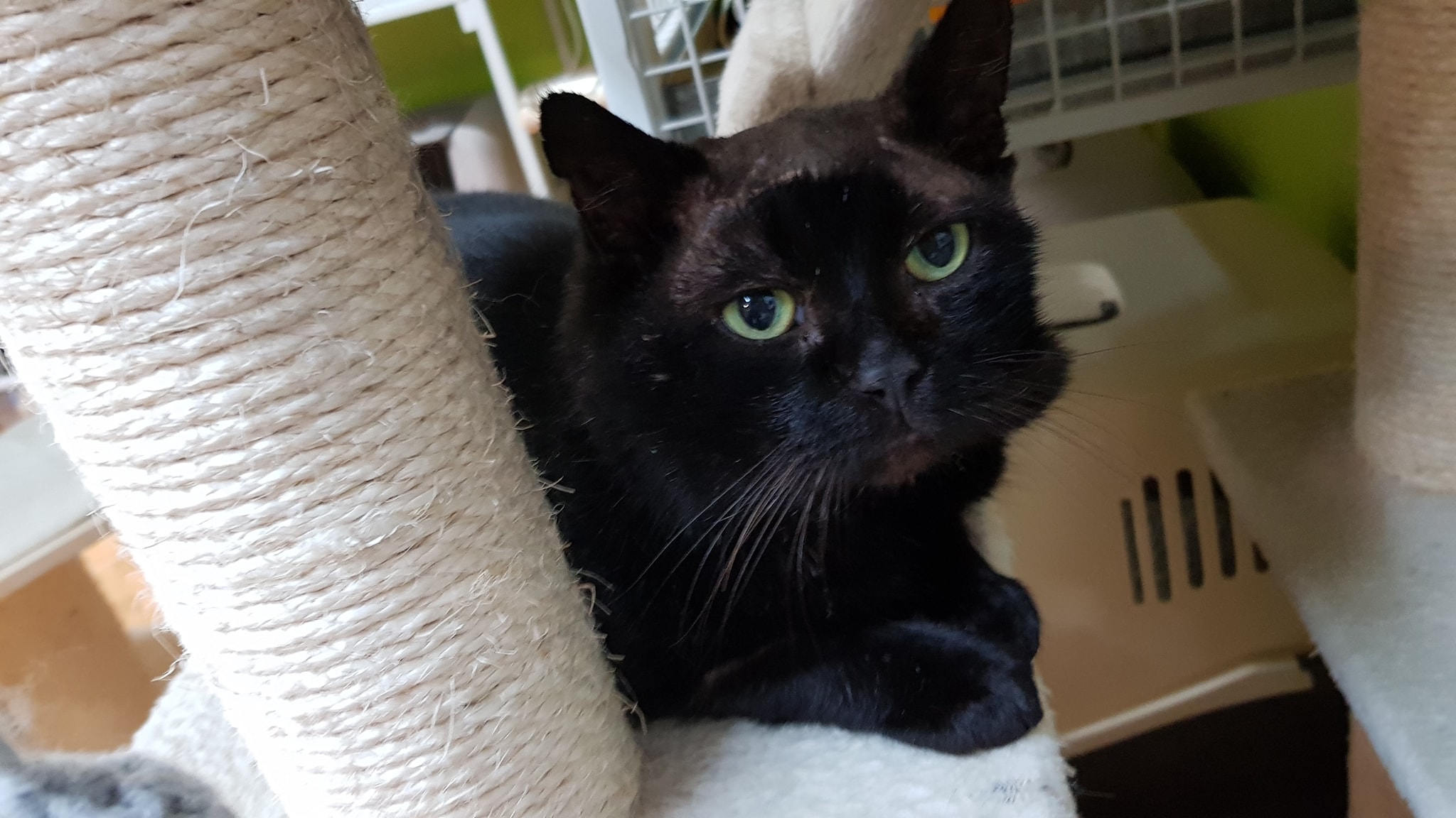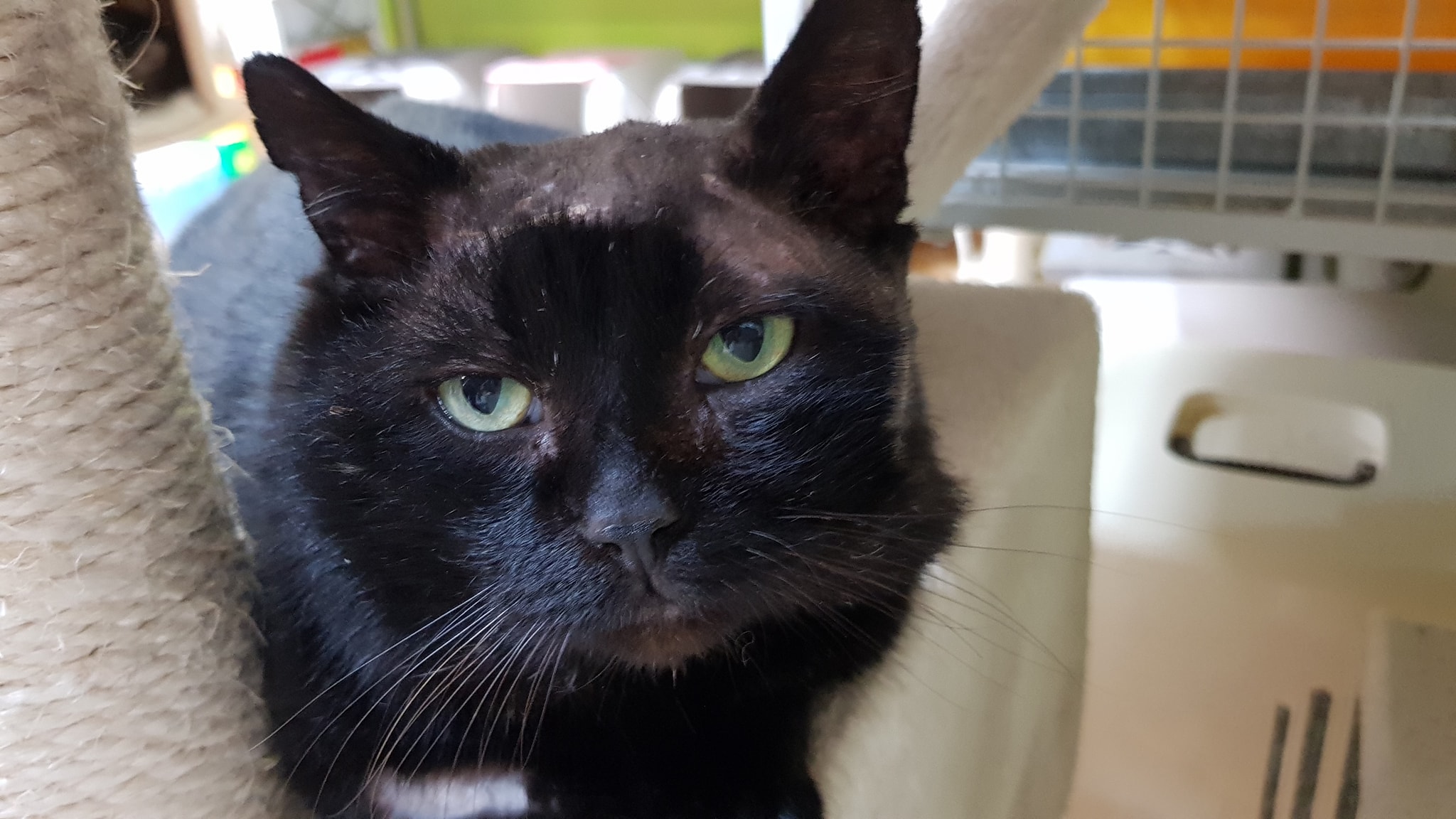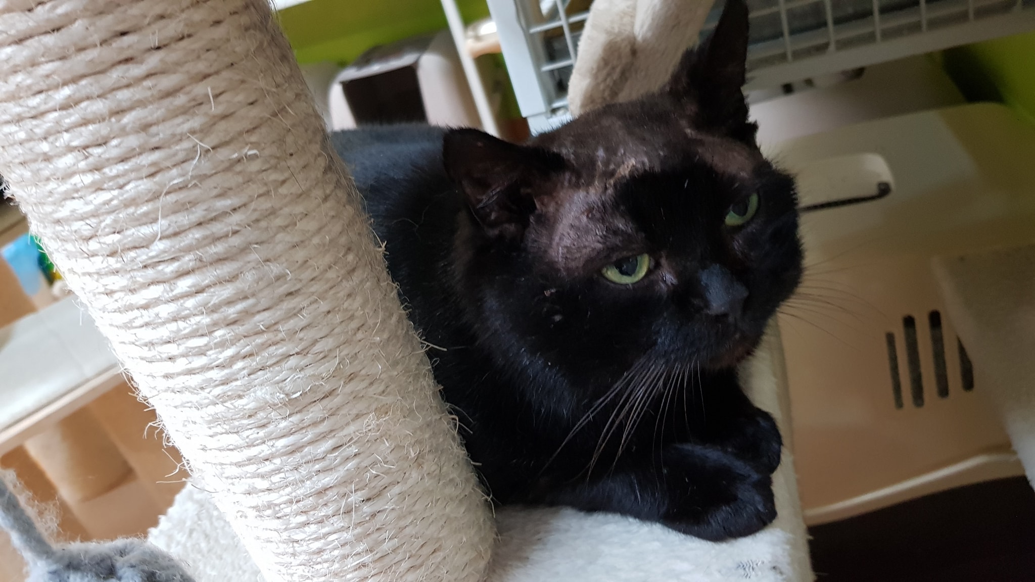 🔶Jamie lehává ve voliéře, byl zvyklý pobývat venku. Včera přišel i dovnitř a pobyl zde téměř celý den. Je to mazel, občas se však lekne, není zvyklý na tak velkou přízeň lidí a na množství kočiček pohromadě.