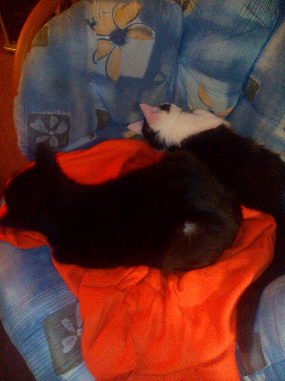 Chci se podelit o radost. Janicka konecne tento tyden prestala prskat a sycet na Monnu. Hraji si spolu a zatim jen jednou spolu spinkaly. Navic Janicka zacala poradne jist a lustruje Monne misky a to dost dukladne, takze vyrostla a zesilila a je to krasna kocka. Monna je zatim nejvetsi mazel, co mame ze Slunicka. Timto zdravime a drzime palecky vsem slunickovym kocickam aby byly zdrave a brzy nasly domov.