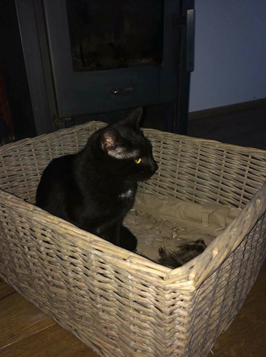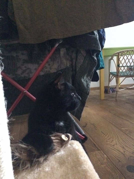Jedná naše příznivkyně (Kateřina Janoušková) našla tohoto malého černého kocourka, potulovat se v nečase venku. Kontaktovala nás s prosbou o radu a umístění. Bohužel jsme plní a tak jsme se paní Kateřině snažili poradit co a jak. Nechala kocourka prohlédnout, odcervit, naočkovata spolu jme mu hledali nový domov. Paní Kateřina byla úspěšná a černý lump hude vánoce trávit v teple a suchu a snad dostane i něco pod stromeček. V budoucnu je domluvena i kastrace.