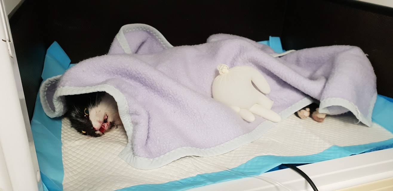 A jak to teda se mnou vypadá…no, nic moc sláva, ale snažím se. I paní doktorka se snaží. V tlapině mám hadičku, abych neměla tak velikou bolest, jinou hadičkou dostávám i papat přímo do bříška, ležím na klinice v boxu a jsem ráda, že jsem. Tlaminu mám sice vyspravenou, i kus drátu mi tam dali, ale pořád to moc bolí, papat nejde. A dokud to nepůjde, abych si zobla z mističky sama, musím zůstat v nemocnici. Ani mi to moc nevadí, krom bolavý tlaminy také nevidím, mám otok mozku. Tak jsem tady hezky v bezpečí. Zatím se neví, ale jak se budu uzdravovat, tak možná vidět zase budu. Ale i kdybych neviděla, my kočičky jsme tak šikovný, že se naučíme rychle žít i bez zraku. To koukáte, co? Vám lidem by to trvalo určo sakra dlouho Nejhorší je, že s tou bolavou pusinou si nedokážu umejvat kožíšek. Vypadám jako nějaká coura umolousaná, fuj tajbl Co nadělám když to nejde, neudělám nic Na zachůdek si ale dojdu, to zas jo. Tak úplnej čuník nejsem. A jsem moc ráda, že nemám žádný vnitřní zranění…říkala paní doktorka, že to asi nebylo tím pádem auto, co mi udělalo tu velikou bolest. Že nejspíš zlý člověk. A z toho je mi moc smutno, mám lidi ráda, i teď, celá bolavá, se ráda nechám pohladit. TAK PROČ NÁM LIDI UBLIŽUJÍ ???