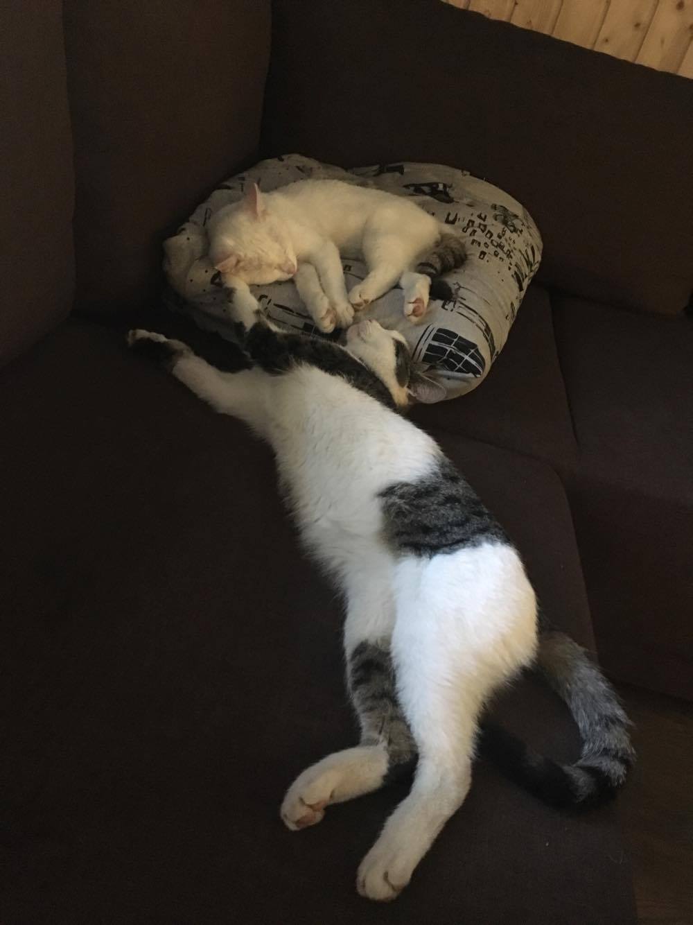 oba se mají moc dobře. Sága už je zdravá. Lék jsme poctivě dávali. Už si na sebe zvykli a “ respektují se“, i když Sága se někdy chce tak moc kamarádi, že musí mít Kámoš hodně trpělivosti a když mu dojde tak si sjedná pořádek. Ale žádné velké bytky se u nás neodehrávají, spíš naopak. Jsou to naši miláčci. Děkujeme celému týmu sluníčka za úžasné kočičky.