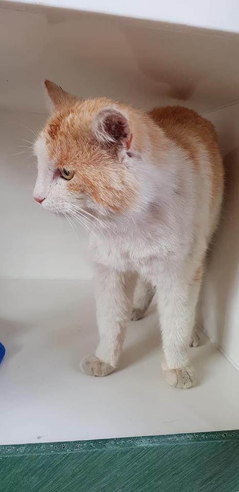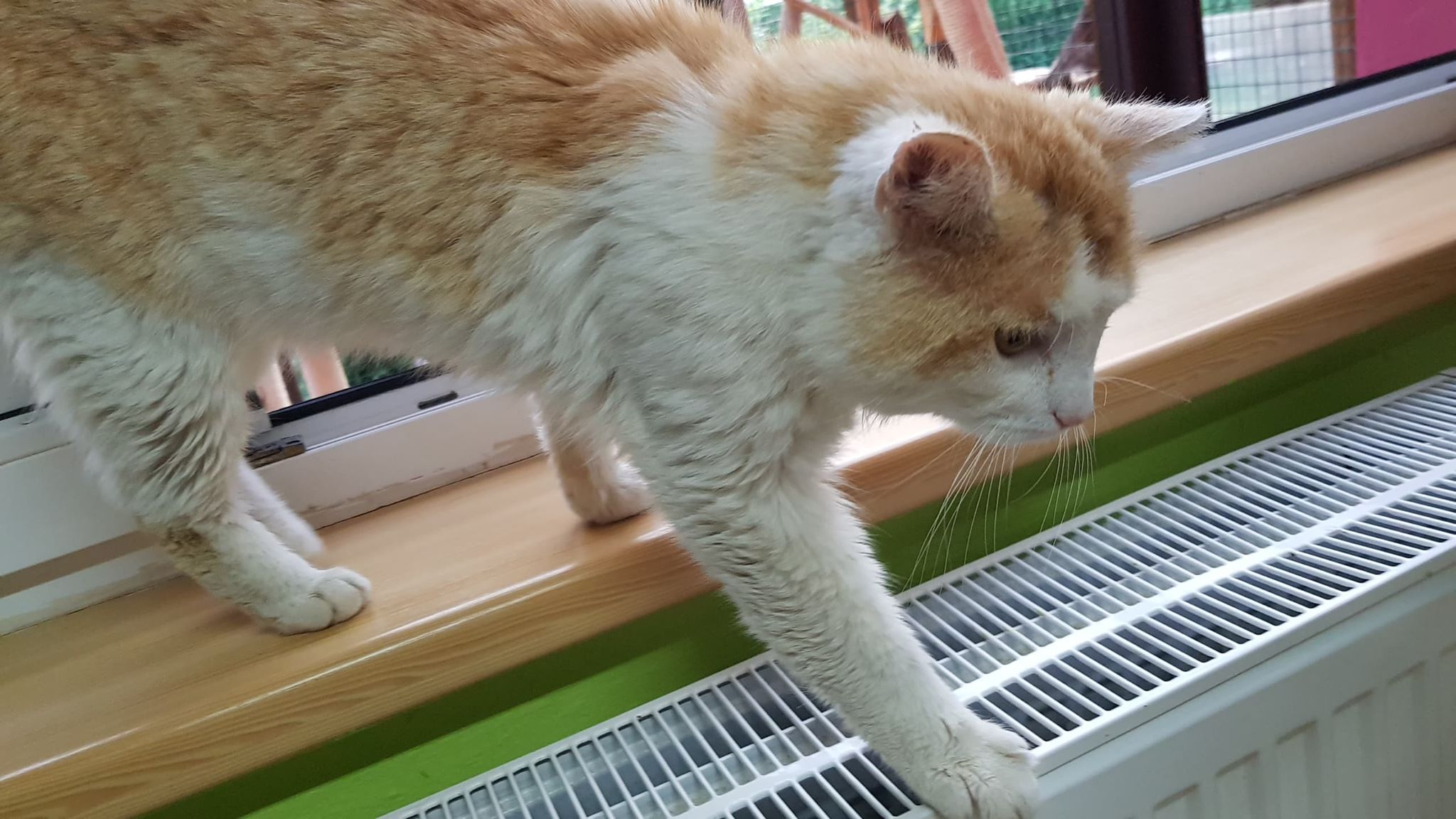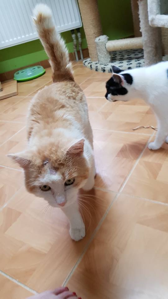 Kocourek Karamel byl do Sluníčka přijat v hrůzostrašném stavu, s ránou na hlavičce a na tělíčku od vzduchovky. Pochází z Podlusk, ale není se čím chlubit, pravděpodobně to tam chodí jako na divokém západě! Chudák koucourek si toho dost prožil. Karamel byl již jednou v novém domově a i když úžasní páníčci dělali, co bylo v jejich silách, nejstarší kočka v rodině Karamela absolutně nepřijala. Usoudili jsme, že bude nejlepším řešením, když se kocourek vrátí a bude hledat domov znovu. Nyní je Karamel u nás velmi nespokojený, snaží se dostat pryč z útulku, je zmatený.