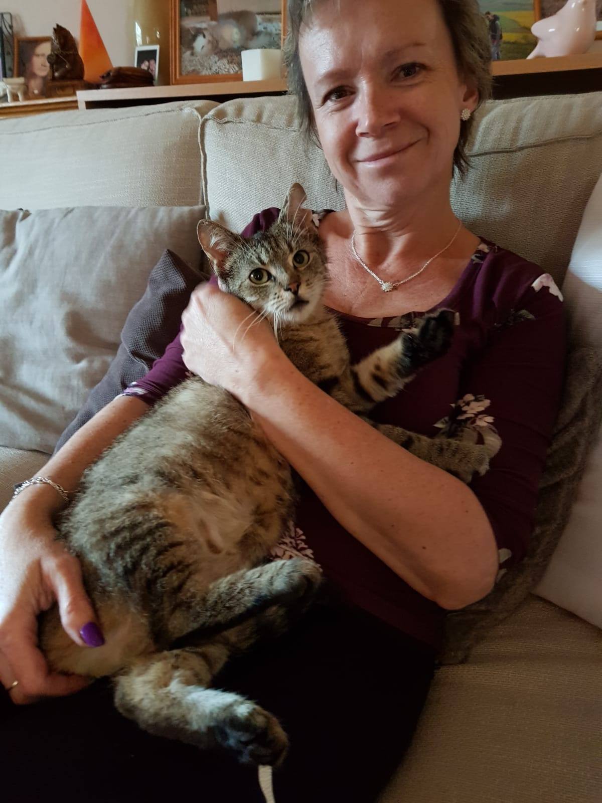 posílám fotku naší Kiwušky…….zvykla si úžasně, pochopila že ji u nás bude dobře a pokaždé když si sednu na gauč přijde, vyskočí a lehne na mě a chce drbat za ušima. Zvládly jsme i naše společné první očkování v Live klinice. Paní doktorka si na Kiwušku pamatovala. Koupily jsme ji i pár nových hraček, je velmi hravá, dobře baští, prostě se má super, a my s ní taky. Dokonce se ukáže i návštěvám…….