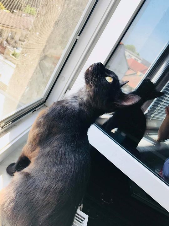 KOČIČKA PAMELKA UŽ SE MÁ V NOVÉM DOMOVĚ TAKÉ FAJN (černá) A KAMARÁDCE AMY UŽ POMALU DOCHÁZÍ ZE TO NENÍ VETŘELEC, ALE KÁMOŠ, SE KTERÝM SE BUDE DÁT LUMPAČIT