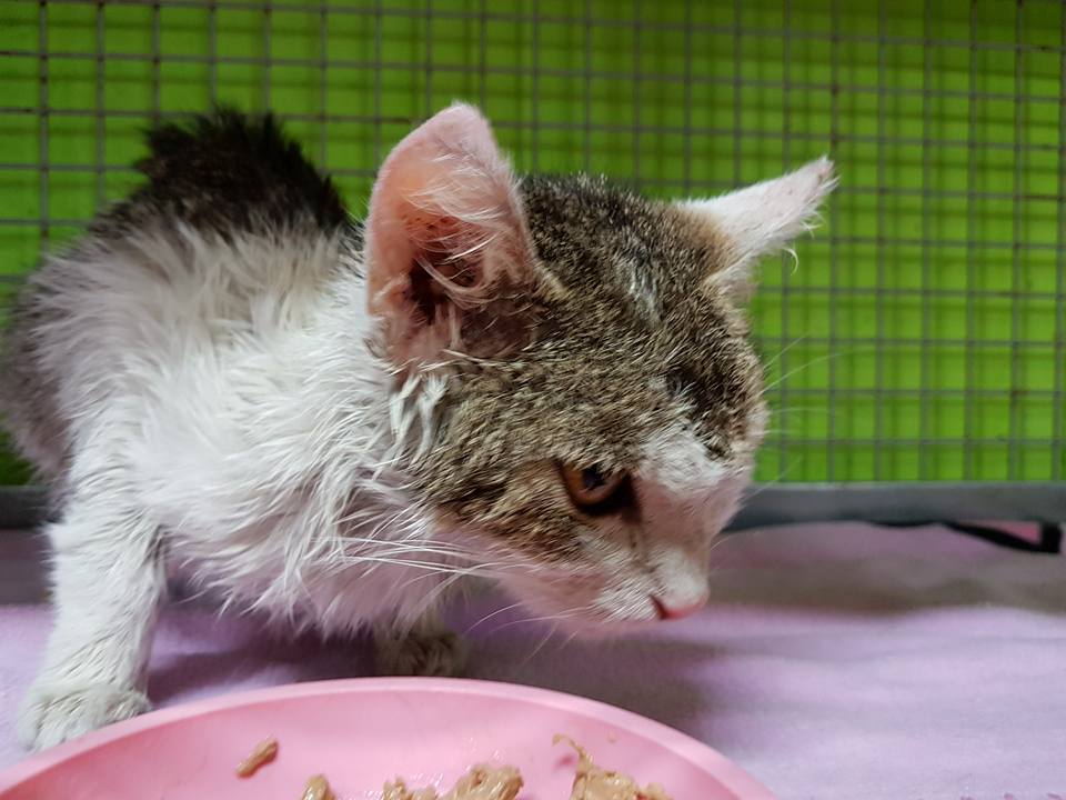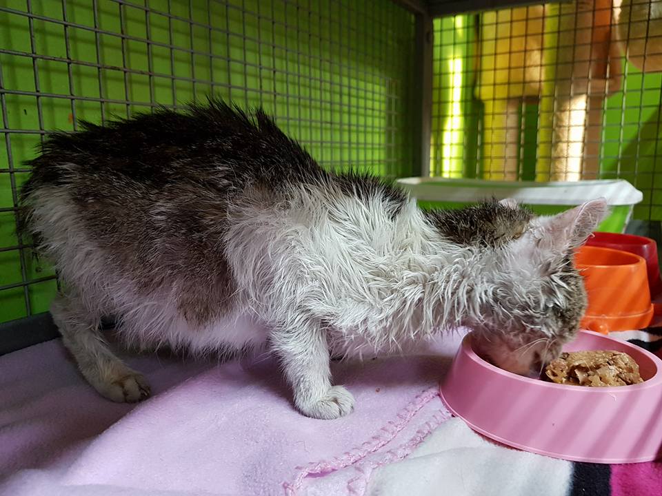 Kočička Rosnička z Roudnice. Její majitel zemřel. Dům, ve kterém bydlel, byl prodán a kočička zůstala bezprizorní. Chodila hladová spát před dveře sousedního domu. Je stará asi 3 roky, velice hladová, mazlivá a odevzdaná.