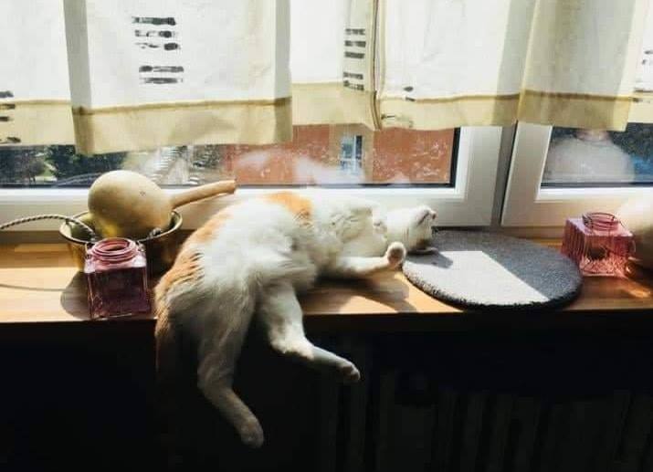 KOCOUREK AZRAELEK ❤️POZDRAVUJE KÁMOŠE DO SLUNÍČKA ☀️ ▪️Kluci a holky mám se primově. Nahřívat si kožíšek na parapetu za oknem, mám plnou misku a krásné mne vždy drbou kožíšek. Vám přeji to samé ❣️