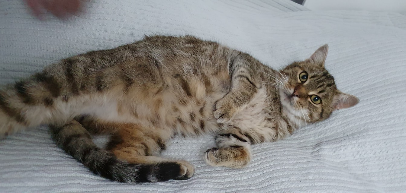 🔸 Pajdovi chvíli trvá než se rozkouká. Je to takový strašpytlík. Za 14 dni ho strach přešel a pomalu zjišťuje výhody spánku na posteli. S ostatními kocoury problémy nemá, tak nějak ho berou. Zřejmě proto že je Pajda postižený. Špatně chodí. Zadní nožky neovládá jak by měl. Podle všeho to vypadá že byl kdysi hodně nakopnutý nebo ho někdo uhodil po zádech a poškodil pateř nebo pánevní kosti. Pajda to přežil, ale odnesl si trvale následky.