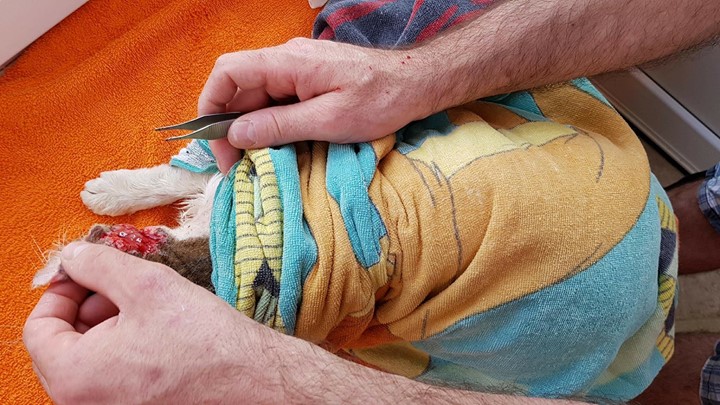 KOCOUREK ŠKOLNÍK PODSTOUPIL DNES RÁNO REVIZI ZRANĚNÍ ZA UCHEM. PODLE VŠEHO POULIČNÍ RVÁČ JAKOBY VĚDĚL ZE MU POMAHAME. NEJPRVE SEKAL A VRČEL, PAK POD PEVNÝM UCHOPEM ZKROTL A MICHAL MU MOHL ODSTRANIT NEKROTICKOU TKÁŇ. LÉČBA BUDE DLOUHÁ. KOCOUREK BUDE ZŘEJMĚ VYPUŠTĚN, ALE AŽ PO ZACELENI RÁNY.