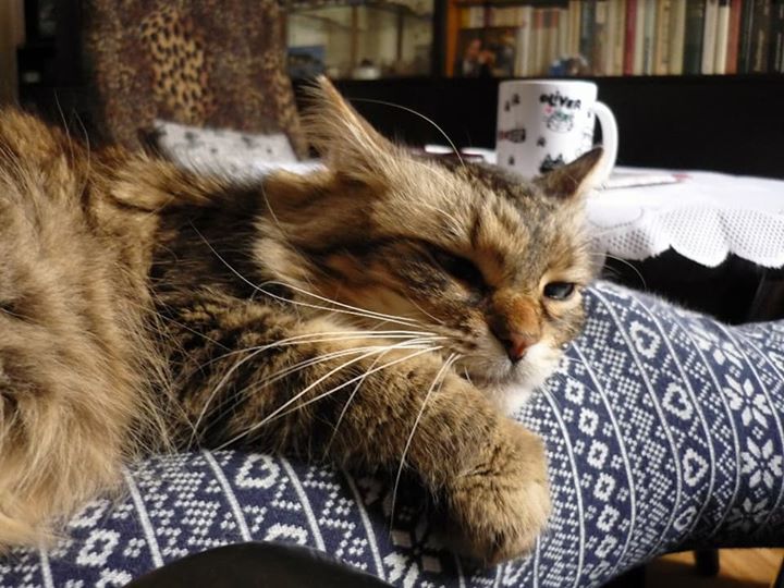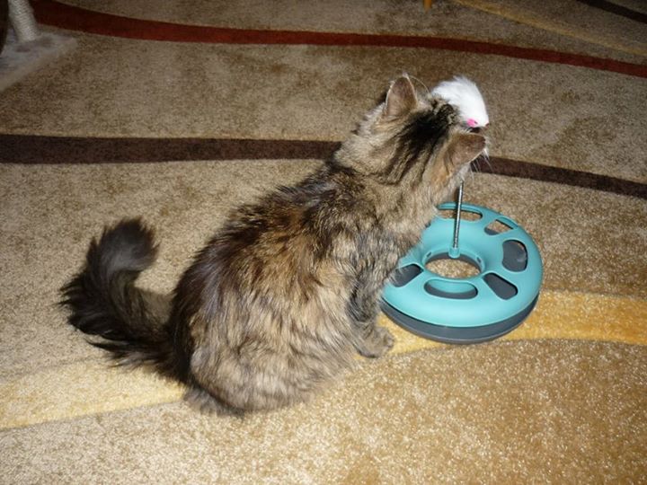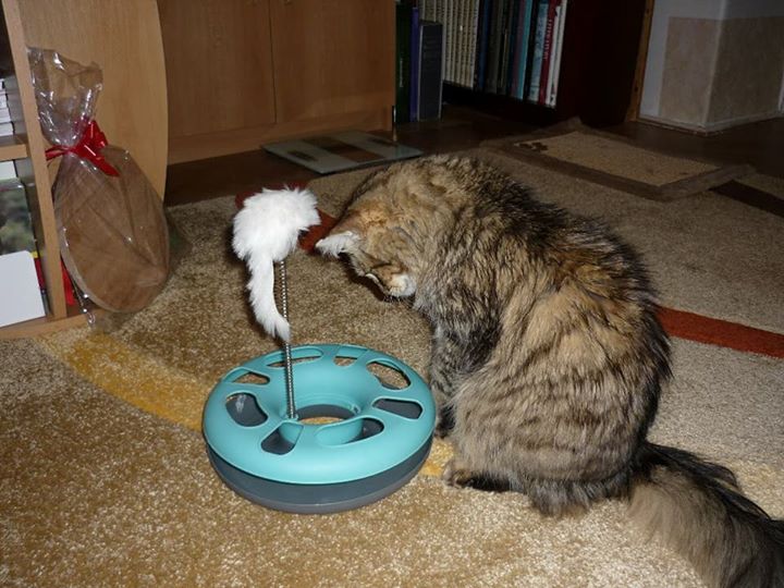 Milí přátelé, přeji vám všem do nového roku pevné zdraví, štěstí a sílu na všechnu tu záslužnou práci pro kočičí obyvatele Sluníčka. Bertík je v pořádku, Vánoce si docela užil, stromeček vydržel (je umělý a bez světýlek 🙂 ). Dárek ho zajímal dokud byl v šustivém papíře, potom dal přednost odpočinku na mých nohách, které jsou tím pádem docela slušně tetované (perforované?) – stále se nenaučil zatahovat drápky 🙂