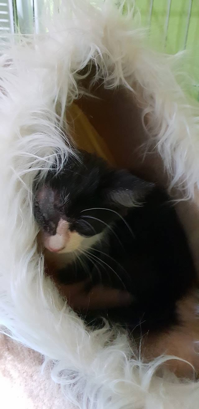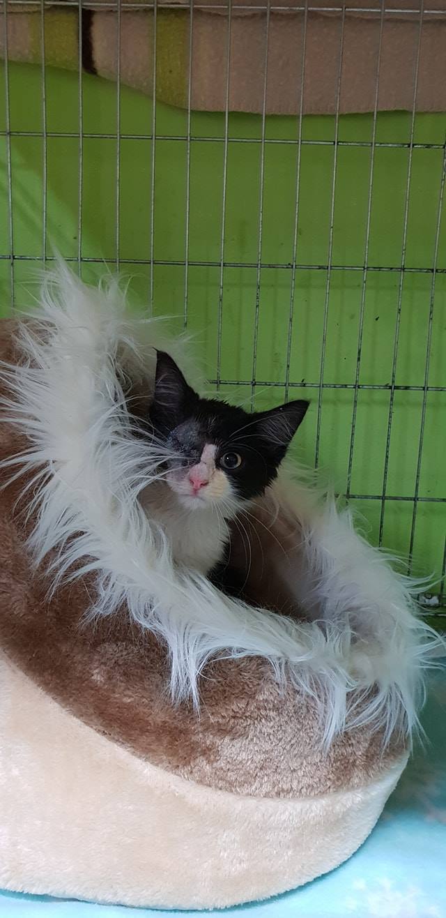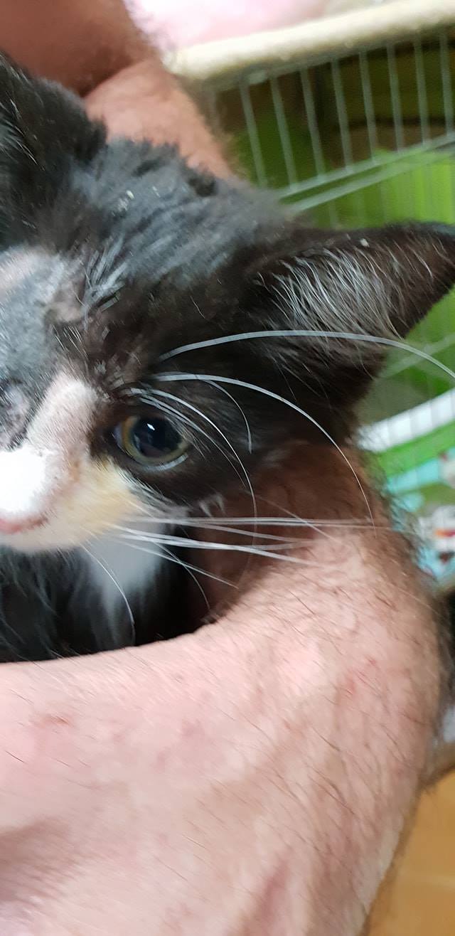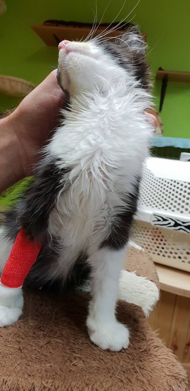 Kotě o jehož příjmu jsme psali před pár dny se nám vrátilo z kliniky. Je to pěkný mazlík co se rád nosí a muchla, ale nesnáší pobyt v kleci. Tu dokáže během chvíle převrátit naruby.