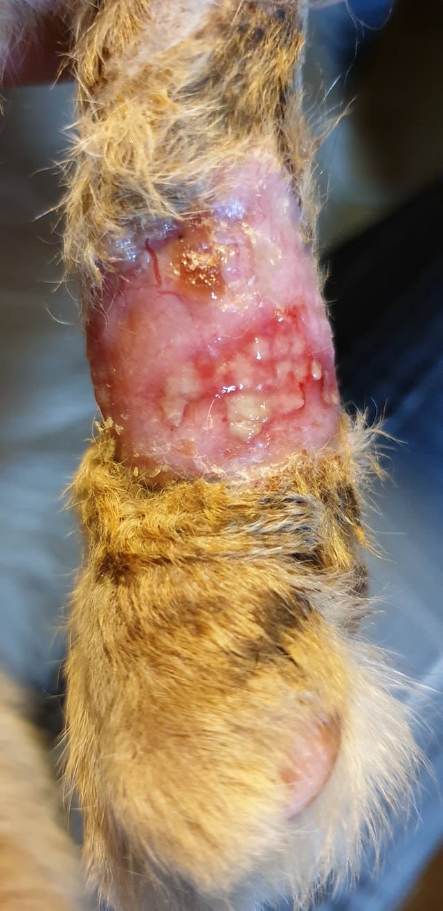 🔸Prevazy teď děláme co dva dny. Rána se krásně hojí. Nová tkáň již chybí jen na malé části. Kocourek pak bude muset nohu více a více trénovat a zatěžovat. Příští týden na klinice zkontroluji zda bude nutné provést ještě reoperaci v místě kde je tkáně málo a hůře se tak prokrvuje tlapka.