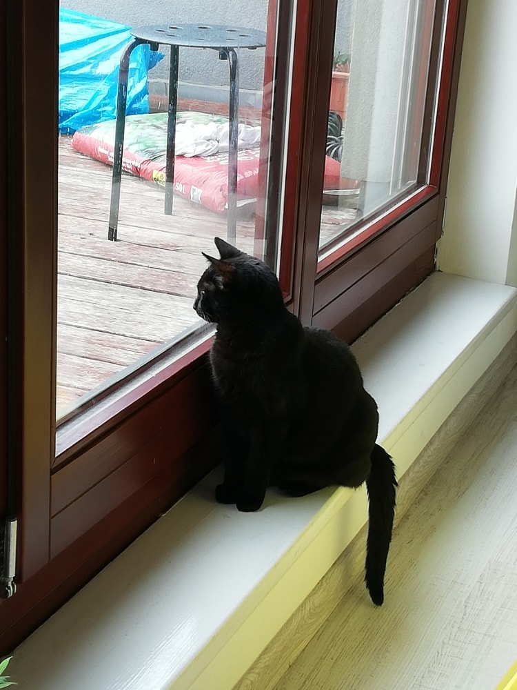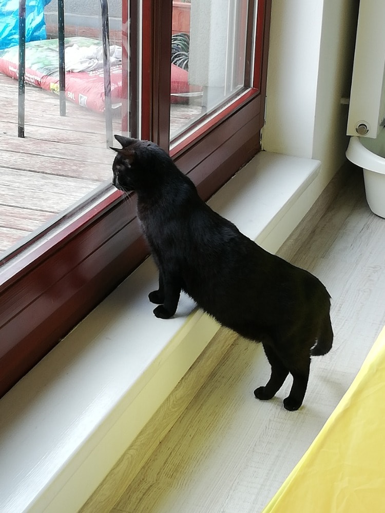 ráda bych vás informovala, že jsme se s Kominíčkem alias Snapem přestěhovali do krásného bytu na Praze 7 s výhledem do okolí. Snape teď s oblibou pozoruje mašinky, auta a lidi, občas zahlédne i zajíce nebo ptáčka. Máme v plánu dát na balkon krmítko, aby měl o zábavu postaráno. Je u nás velmi spokojený, zcela překvapivě není nijak zmlsaný a granule mu stále chutnají. Když se na něj zapomene, chytře si hned dojde k pytli a začne ho okusovat, aby mi to došlo. Spí samozřejmě v posteli od prvního dne a syna, který je ještě malý, okázale ignoruje. Ke mně je ale velmi přítulný, rád se nechá hladit a není nijak mrzutý . Moc děkuji, že jste mi ho tak hezky odchovali, je to skvělý kocour.