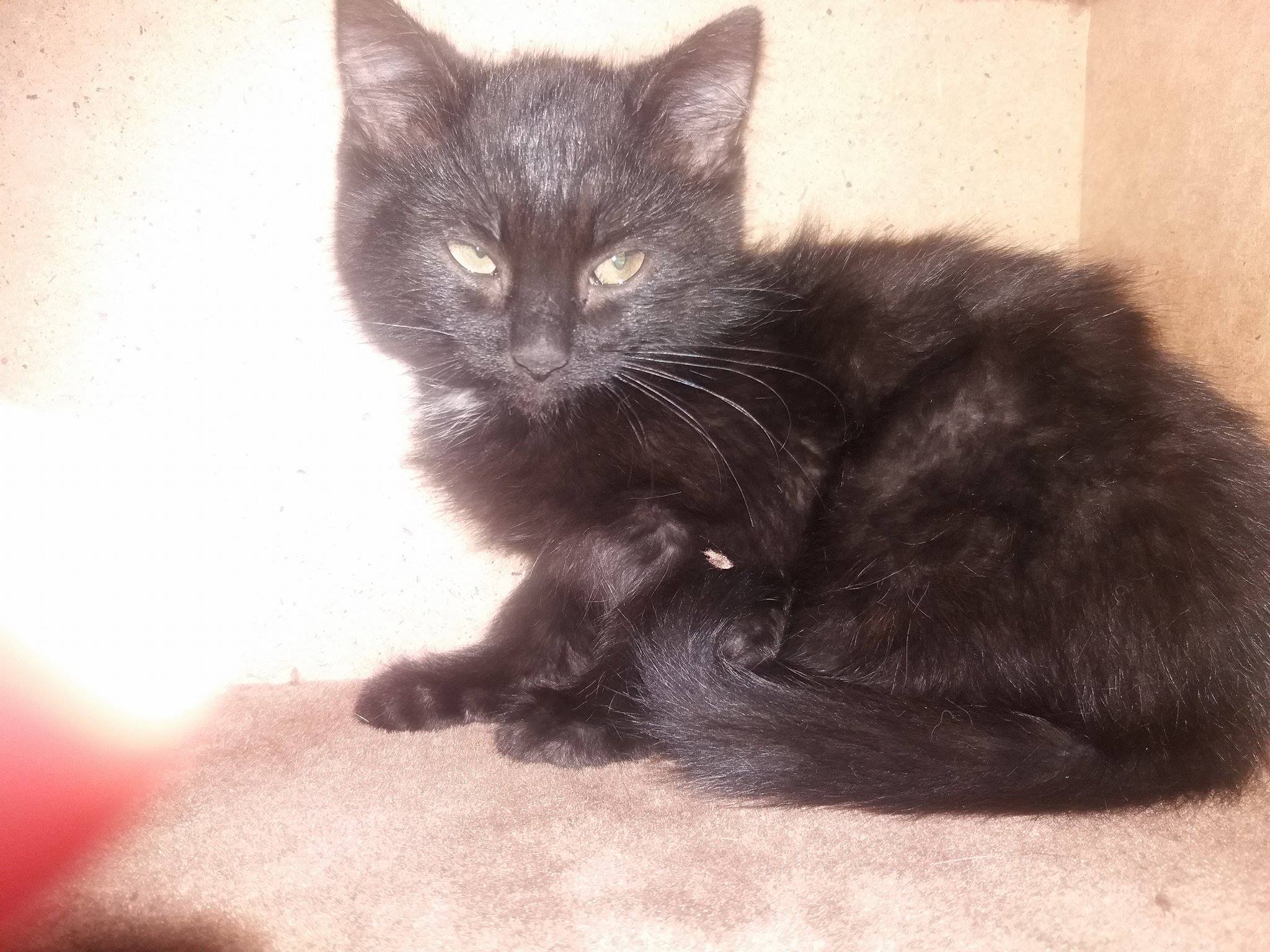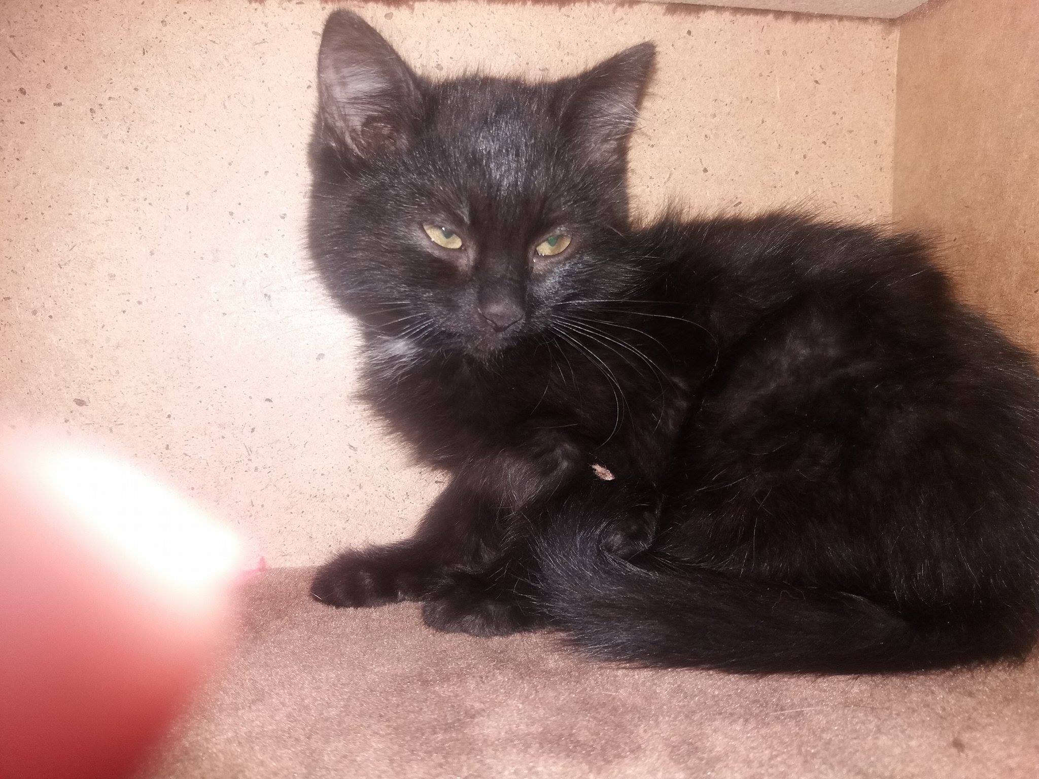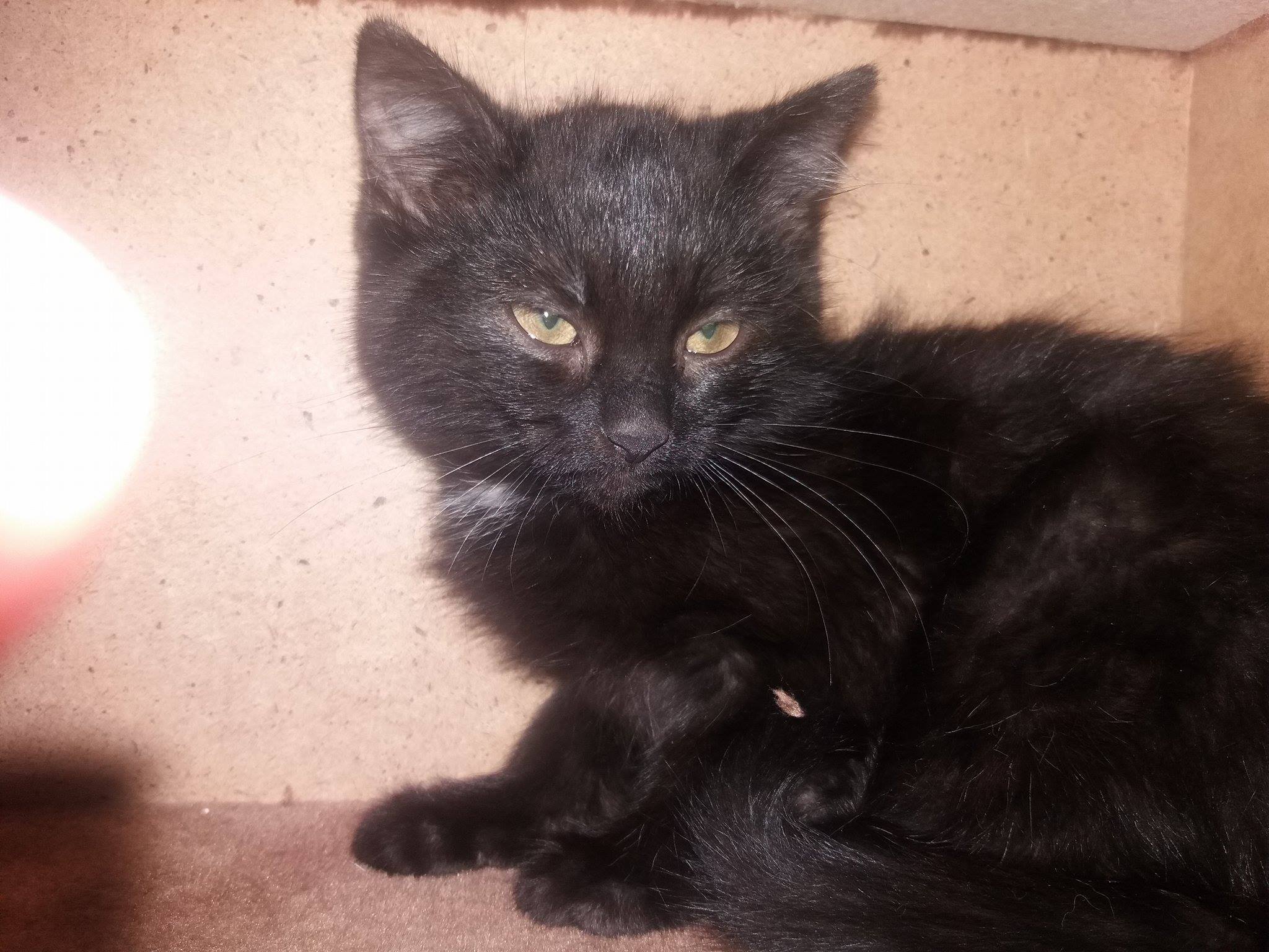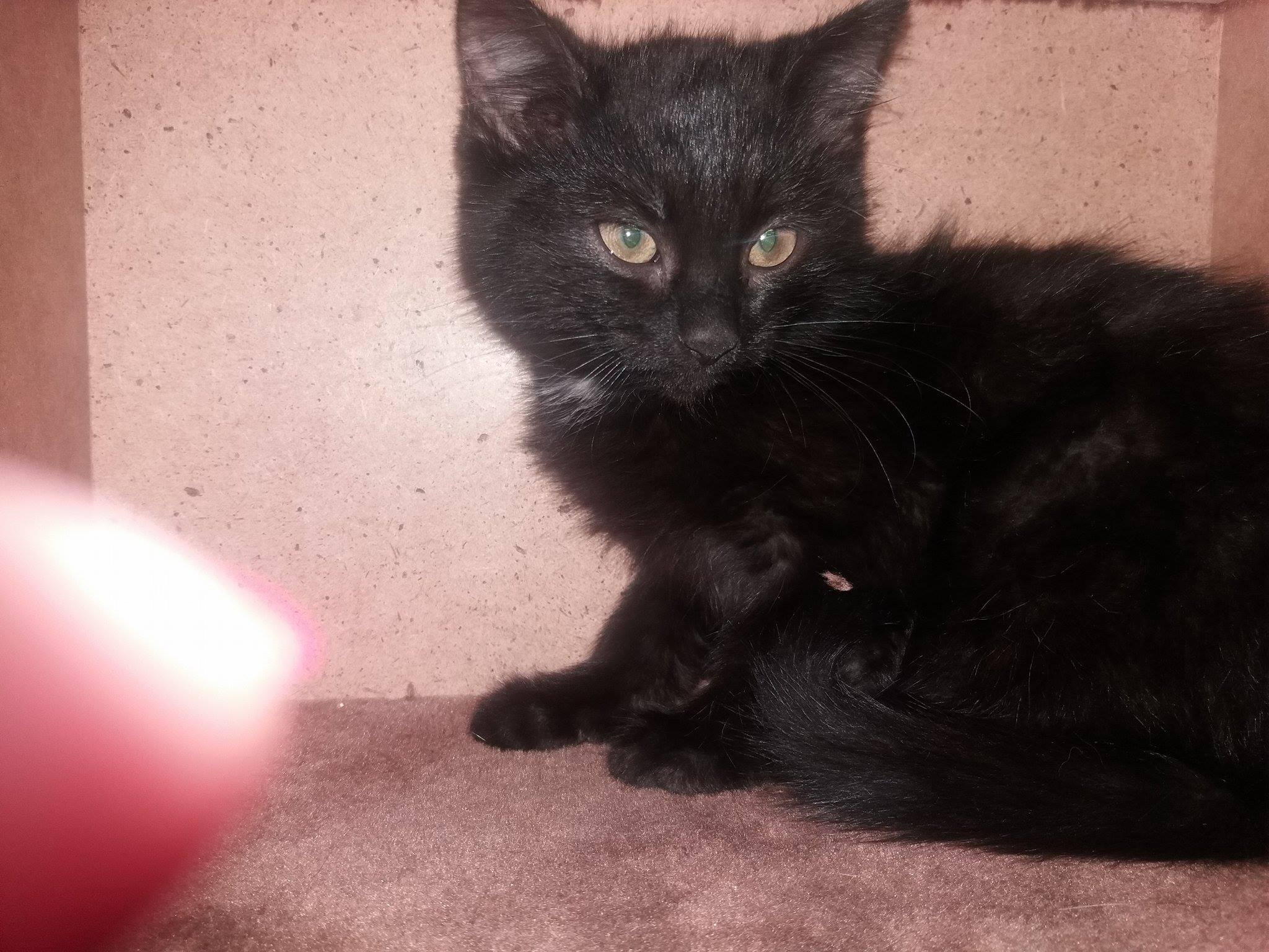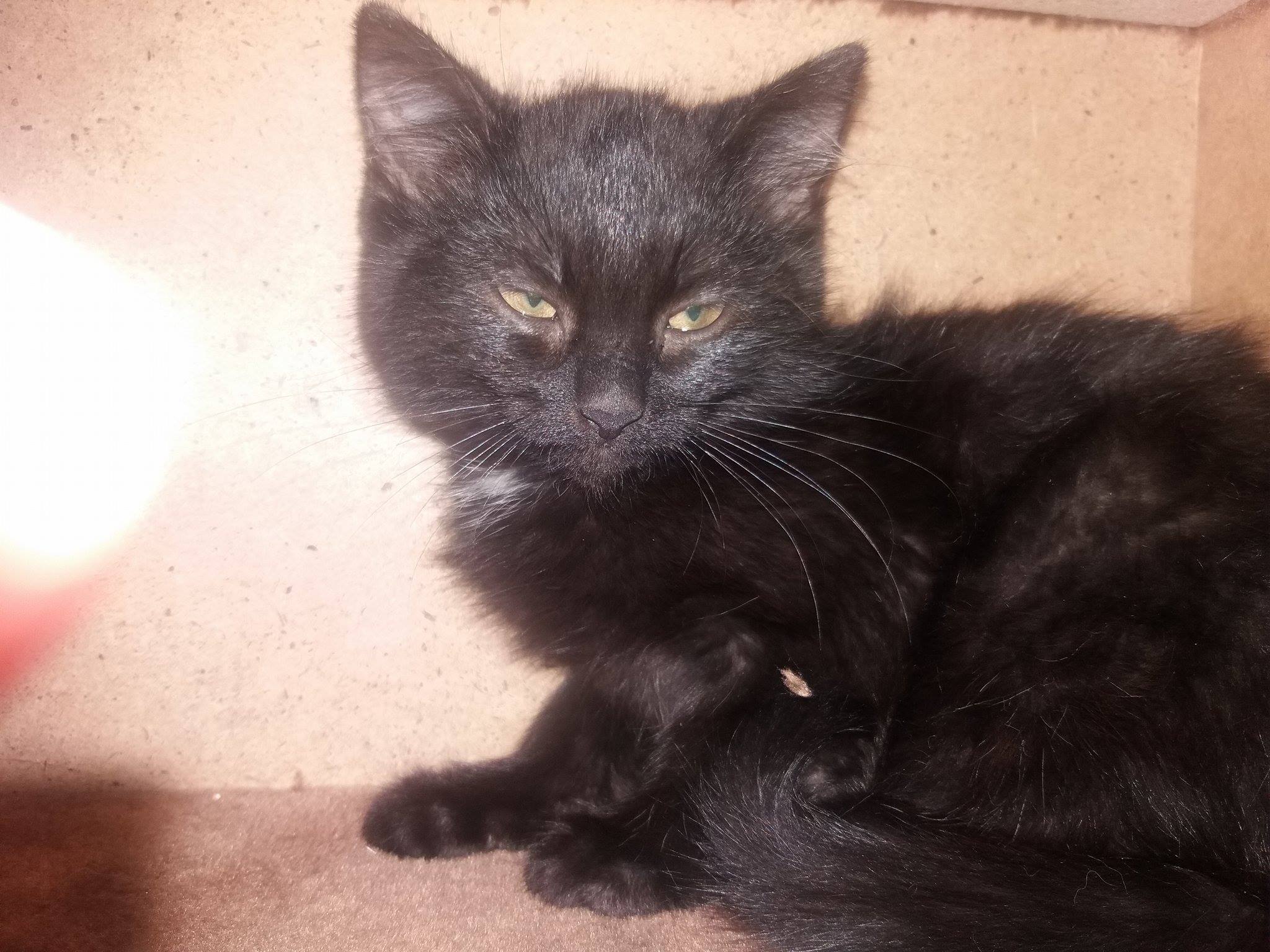 Černý kocourek, který byl spolu se svými sourozenci Kouličkou, Kuželkou a Válečkem nalezen ve Vlastislavi, na půdě rodičů Milana.
