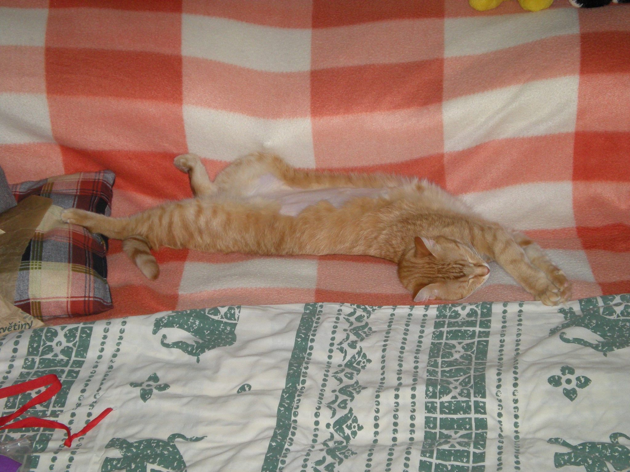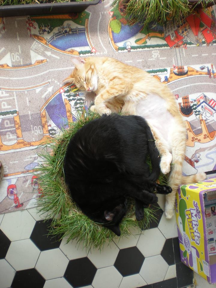 Jinak se chová jako zdravá kočka, zapojuje se do hraní, prohání Elu (zvlášť po ránu), má zájem o vše, co se doma i venku děje, skáče s naprostou jistotou, brousí si drápky a myje kožíšek několikrát denně. Jen není tak divoký, jako dřív. Ale užíváme si pořádně každý den, kdy jsme spolu.