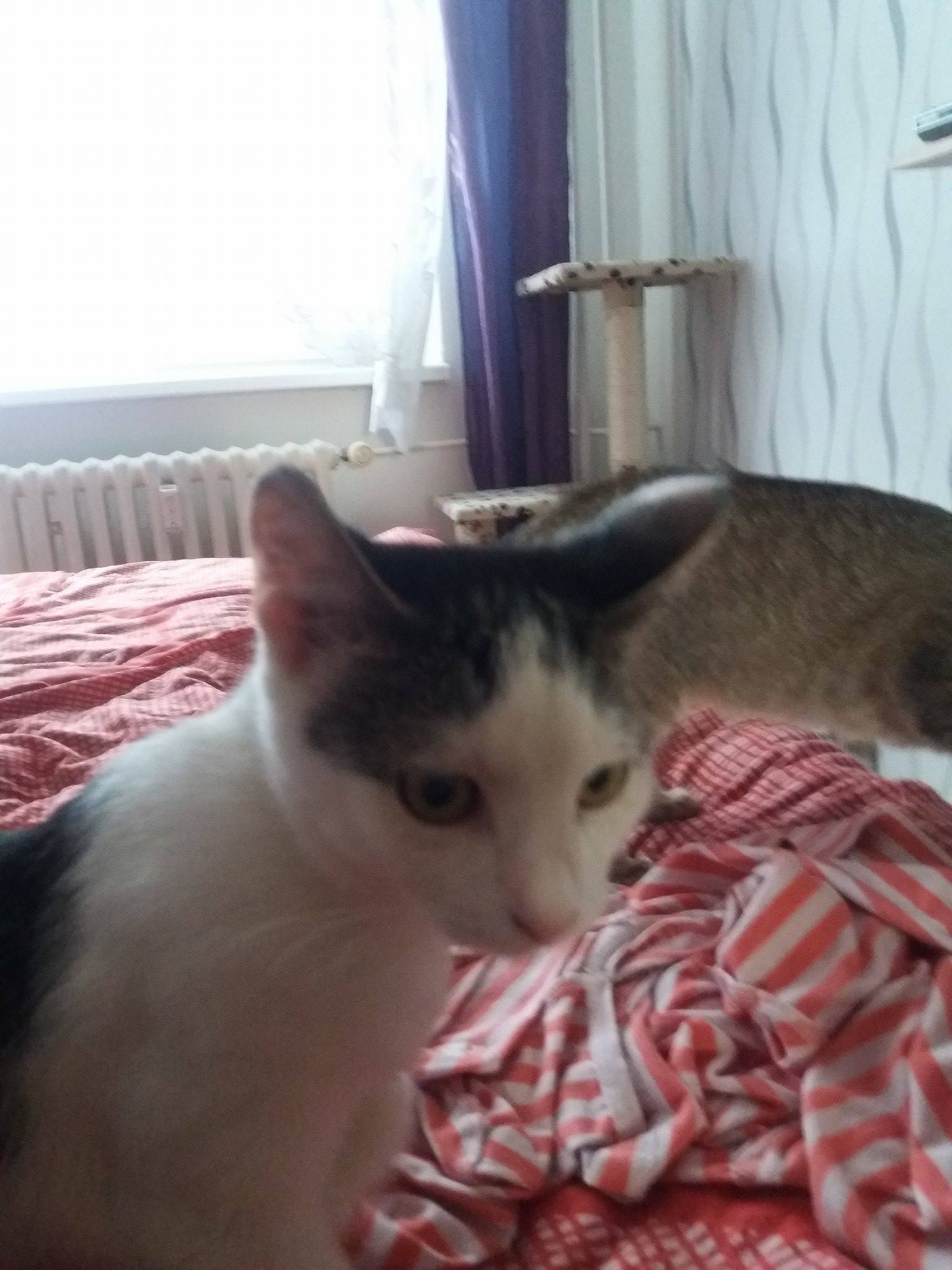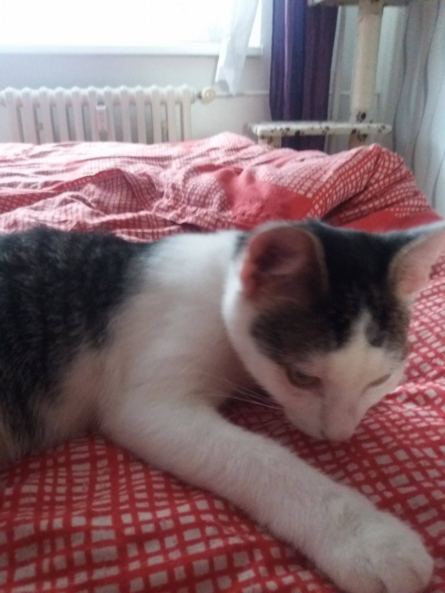 Bíločerný kocourek odchycený ve věku asi šesti týdnů v Rohatcích, spolu se svými sourozenci Ibizou, Borneem a Malorkou. Jejich plachá matka byla po kastraci vrácena zpět do lokality.