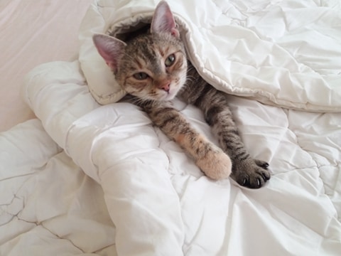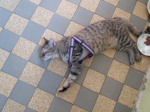 LATTÉ MŇAUDÁMA, KTERÁ V MINULÉM ŽIVOTĚ PRÝ BYLA PES, PRAVILA NOVÁ ADOPTIVNÍ MAMINKA 😀😍 Procházka po terase ji zmohla, ani kšírky se jí nestačily sundat.