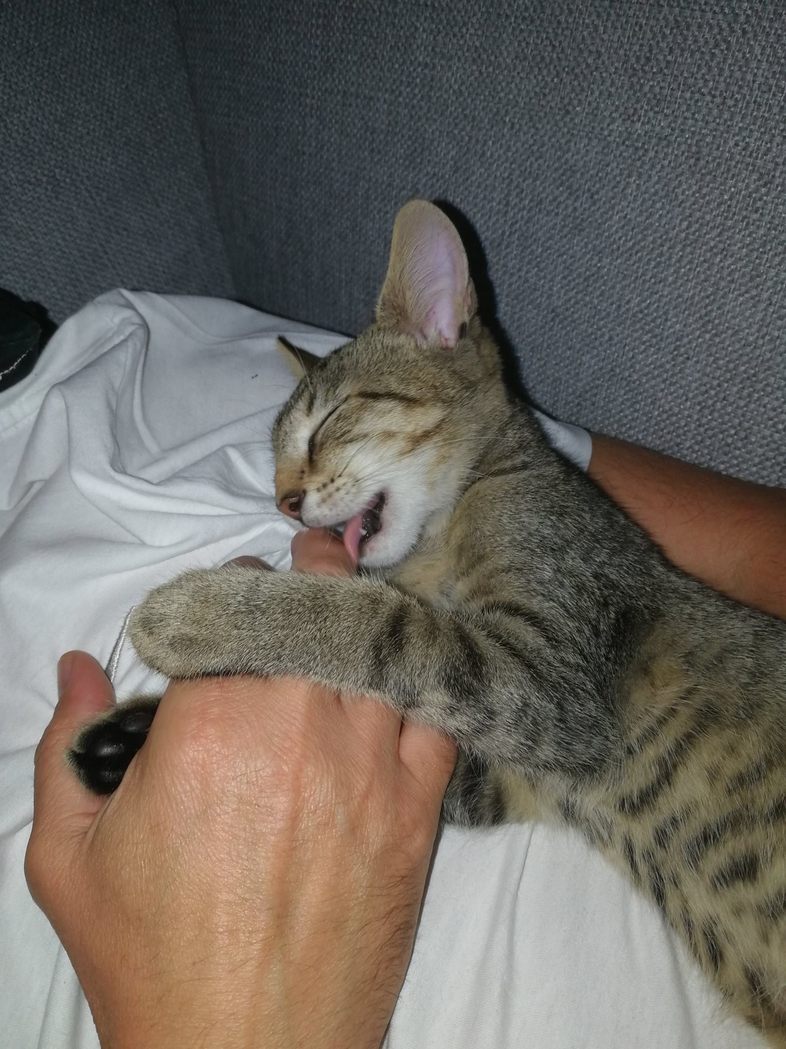 Tak se opět po měsíci ozýváme s Leonkem.Má se dobře,je zdravý ,žravý a hravý.:-D Úchylka s dumláním našich prstů ho zatím nepřešla,naopak se přidala ještě jedna a to,že miluje igelitky. Rád si v ní hraje a pak v ní usne.Vše samozřejmě pod dozorem.:-) Příští týden jdeme na kastraci a doufám,že vše proběhne dobře a bez komplikací. Až to bude mít za sebou,tak se zase ozveme. Mějte se ve Sluníčku dobře Vy i Vaše kočičky….