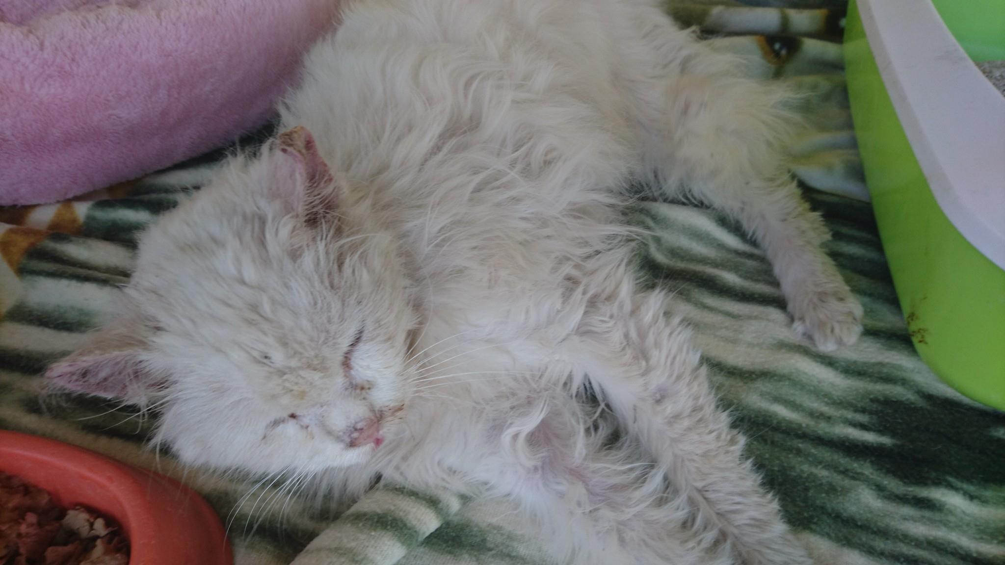 Bílá dlouhosrstá kočička s každým očkem jiným, která se ocitla se na zahradě našich příznivců z obce Hrobce. Při přijetí měla kožíšek plný kuliček od trávy a suchých větviček, ubohá, s velkou rýmou, zanícenýma očičkama, bolavým zánětem v ouškách, s vystupující páteří a dehydratací. Lilien necítí, sama si proto nenajde mističku s jídlem, chybí ji některé zoubky a další se jí viklají.