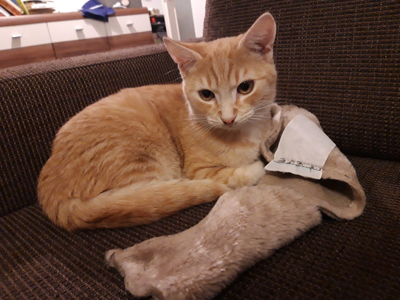 ◾️Dobrý večer, tak po první proplakane noci a dni stráveném pod gaučem se nám podařilo Lišáčka (dnes už Foxík) dostat ven. Jí a pije, jen když mu to prisoupneme přímo pod nos, ale jsem za to ráda 😊. Je lekavý, ale s dětmi si už i pohrál.