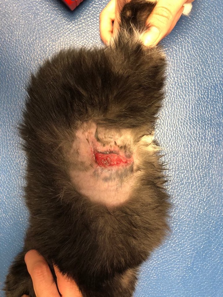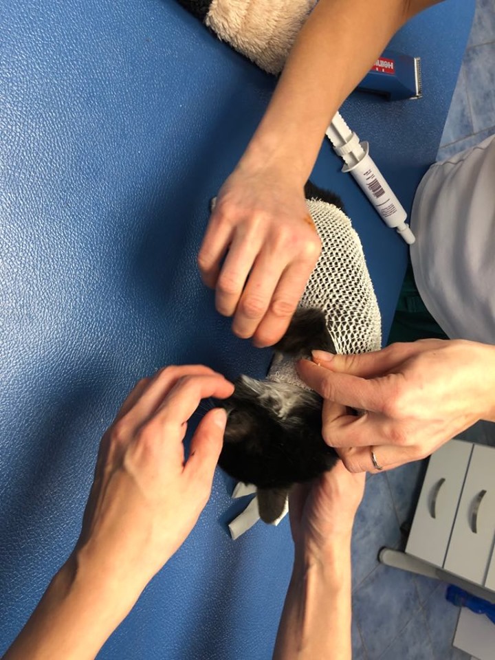 🔶Malá Lívie měla nad levou kyčlí slepené chlupy, pod kterými se rýsovala živá rána. 🔶Dnes byly chlupy odborně odstraněny a ránu je třeba denně ošetřovat a převazovat. Lívinka dostala i celková antibiotika.