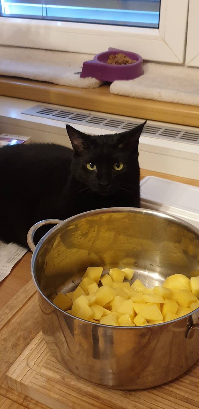 ….. příspěvek měl přes 5o.ooo shlédnutí a spoustu negativních komentářů zda kočka patří na stůl, jak budou knedlíky chlupaté, jak jsou kočky špinavé,…….