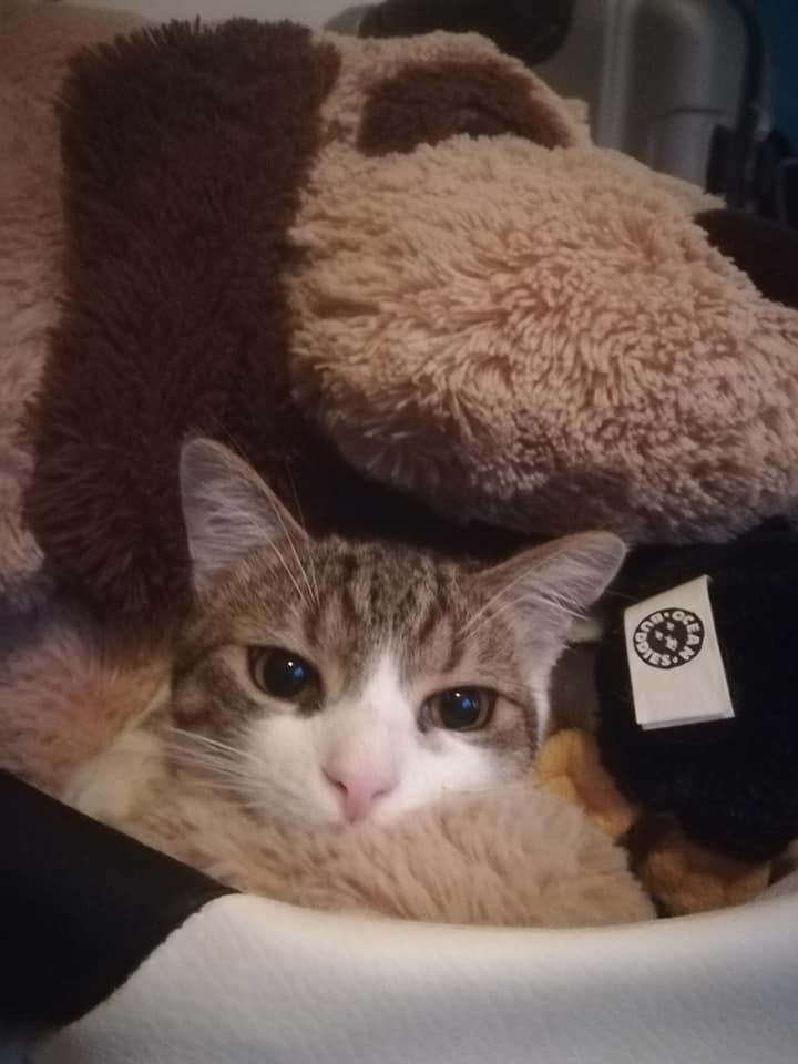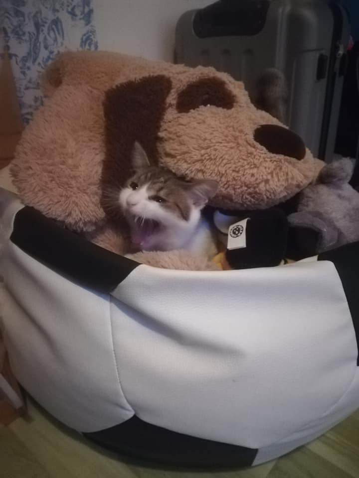 Ahoj všichni , zdravím z domova. Mám se krásně, jsem pěkný divoch, miluju výšky a stále někde běhám a chvíli neposedím, proto mi začali říkat Pan Forest Gump. V novém domově jsem si už úplně zvykl a jsem parťák s fenkou Annie i starším kocourem Tobiášem.