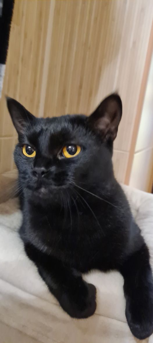 ‼️MAGGIE JE MLADÁ, ČERNÁ KOČIČKA S LESKLÝM KOŽÍŠKEM, AMPUTOVANÝM OCÁSKEM A NÁDHRNÝMA OČIMA. MOC BY POTŘEBOVALA KLÍN NA MAZLENÍ, KTERÝ JI U NÁS SCHÁZÍ‼️