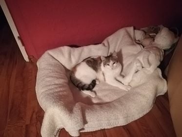 ▪️Dobrý den. Naše Mandy je od včerejška Anička ♥️ a dobře na jméno reaguje. Posílám pár foteček…. Všechno je v pořádku… Je maaazel😍. Se Sárinkou i Daisynku v pohodě. Už si dovolila spát l v pelíšku Daisynky…ta se otočila a šla spát jinam🤣 V noci spinkala opět s námi. Děkujeme Vám za péči o ni, ta dlouhá cesta stála za to. 💞