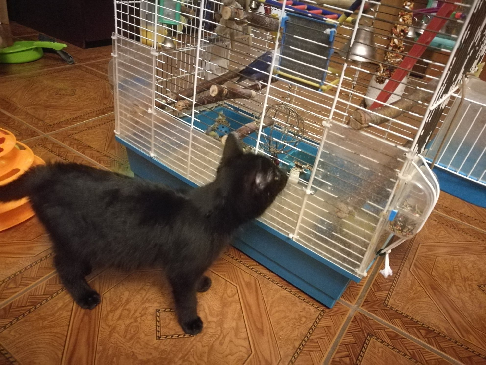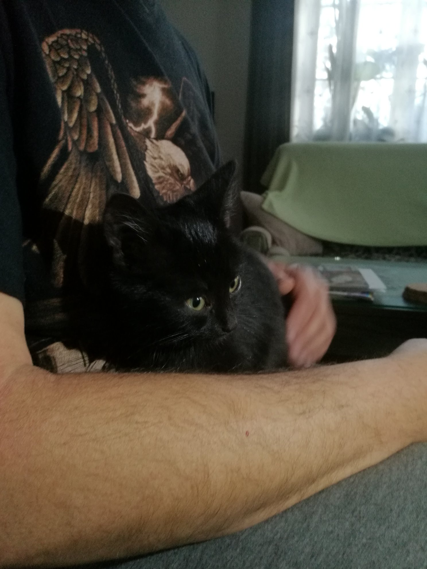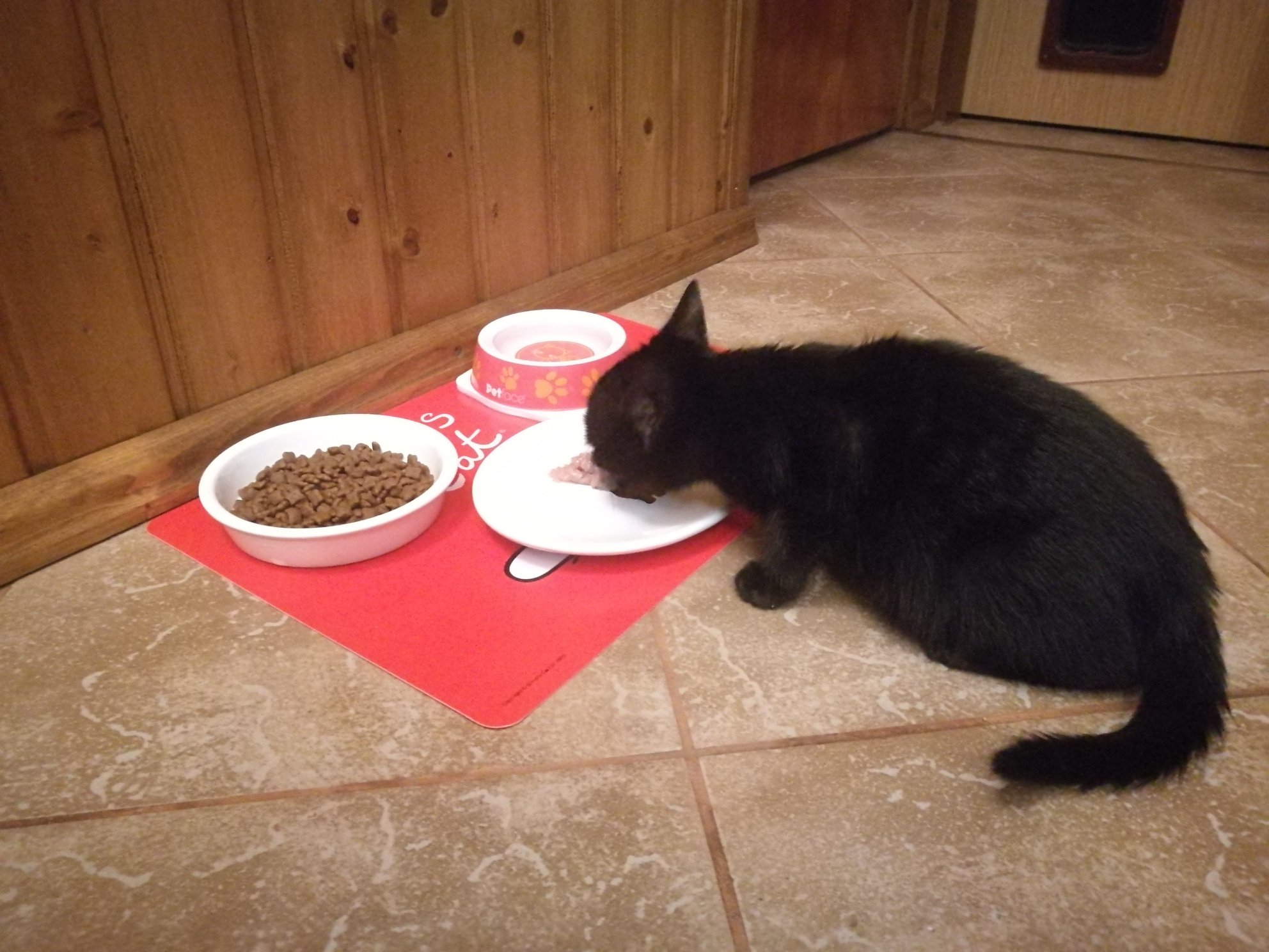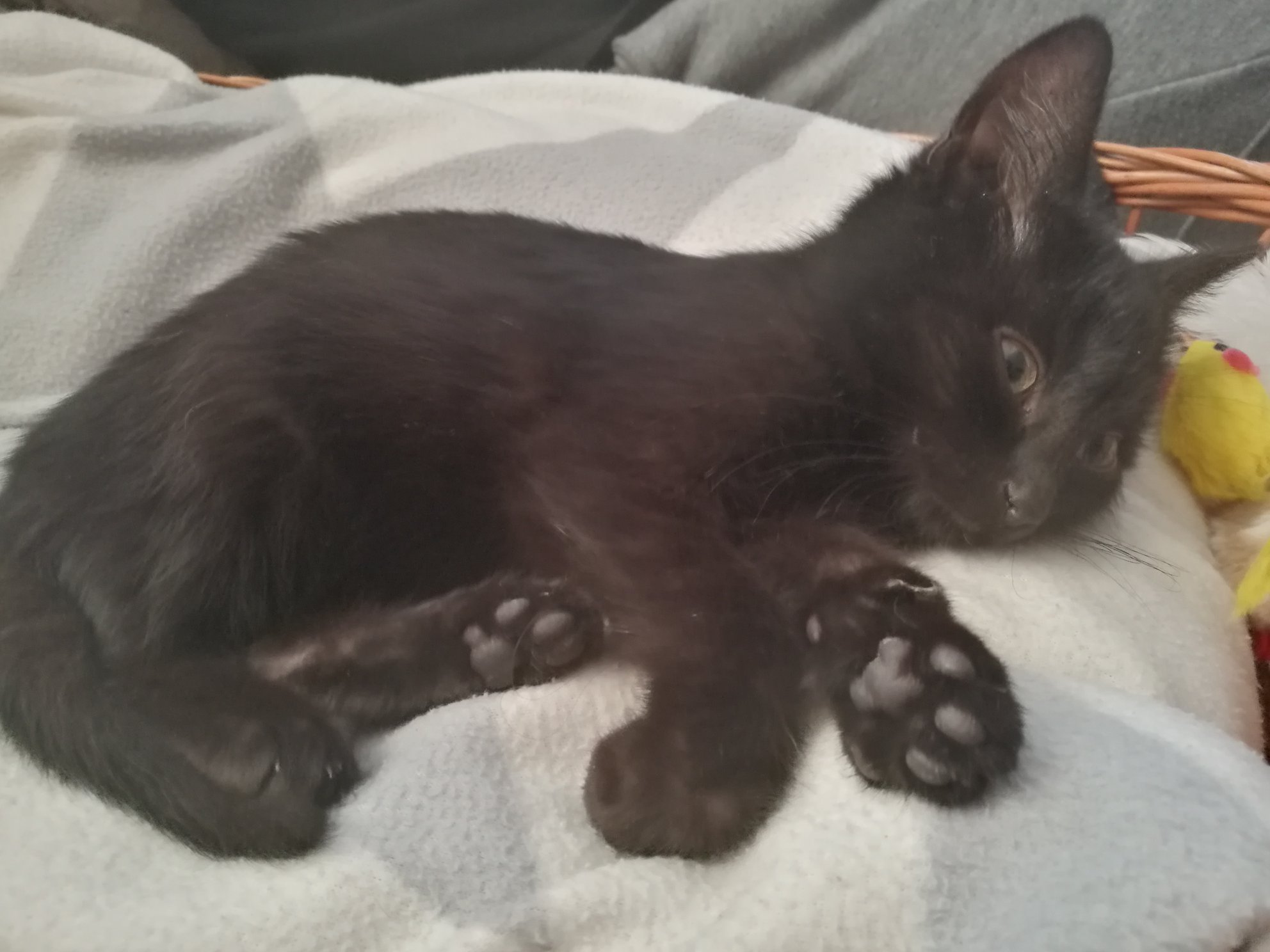 Ještě ho občas ledacos vyleká, ale za těch pár dní udělal velký pokrok. Je to obrovský mazel, který se pro pohlazení dokáže válet i po zemi. Krásně papá a se záchůdkem nemá problém, je to šikula 🙂