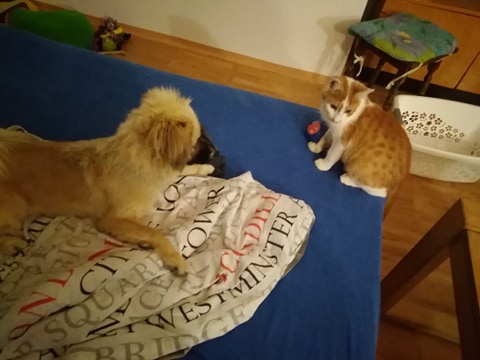 Zdravíme do Sluníčka, Matýsek se už snasi skvele se vsemi 😁 ale je to takovy frajer vsechny tu tyra ale Amalka si to nenecha libit a Bailey stenatko ten si to libit necha a utece radsi 😁😁😁 udelal si tu respekt u pejsku…