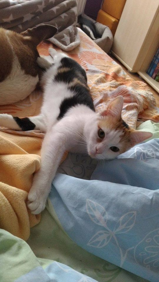 Dobry den, tak uz jsme shromazdili fotecky. V listopadu to bude rok co jsme si od Vas vzali Mazlinku s Meggi. olky se tesi dobremu zdravi a uzivaji si zivot plnymi dousky. Mazlinka letos podstoupila bezproblemovou kastraci a Meggi diagnostikovali chronickou aktivni lymfoplasmocytarni gingivitidu, ktera neni zpusobena retroviry museli ji vitrhnout ctyri zuby zatim nema dalsi problemy udrzujeme ustni hygienu a dostava kompletni kmeni v podobe pastik kapsicek atd. Mazlinka je kocka vazne silena naspi tak hodinu denne zbytek dne lita po byte mnouka a vubec se nezastavi a hlavne v noci je to kocici teror dokonce uz ji bereme i na prochazky se psy na ksirkach aby se zabavila u nas v pokojicku to vypada jako v kocicim pavilonu vsude stojanky, koulodrahy, strapecky, micky, mysky, santa kocici a vsechno co se da koupit. Nesmim zapomenout na morcata to je atrakce cislo jedna. Jinak je to milacek moc ji milujeme je zlaticko rada se mazli je to takova cista dusicka. V lete s nami obe dve kocicky jezdili na chatu coz pro mysi, hady a ptacky v okoli byla opravdu zla zprava. Mazlinka je lovec profesional denne prinesla tak ctyri mysi jen co mi vime do toho ptacky a nekolikrat nam dokonce prinesla i uzovky takze sila nezlobime se na ni chapem ze to je prirozene a jsou to dary 😀 Meggi taky neleni ale zustava jen u mysi. Obe dve si nevahaly na mysich pred nasimi zraky pochutnat. Meggi je opak Mazlinky cely den prospi provali prijde se pomazlit najist obcas se necha zlakat ke hre ale po vetsinu casu je to bily chlupaty spacak. S Mazlinkou uz se skamaradily honi se po byte cihaji na sebe a proste si hraji. Obe dve kocicky jsou bajecne jsme stastne ze je mame zivot je s nimi veselejsi. Na zaver posilame fotky jak si holky letosek uzili. Posilame do Slunicka silu, zdravi a pozitivni energii. Moc Vas s mamkou obdivujeme a vazime si Vas za to co delate.