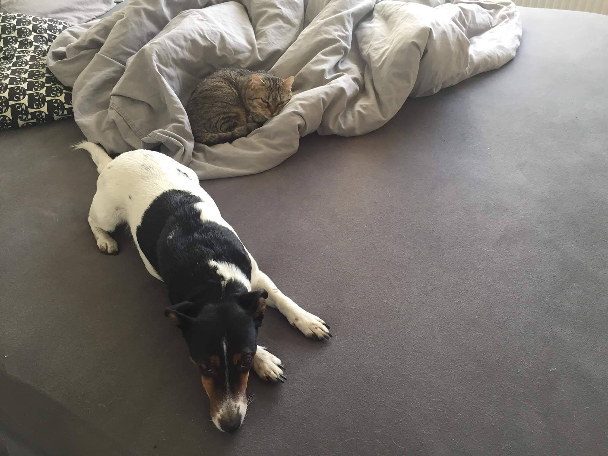 Dobré ráno, dneska je to už měsíc, co jsme si přivezli domů Margotku. Jsme za ní strašně rádi, je to šílený mazlík, pořád vrní. Zvykla si na nás během pár dní a pejska se skoro nebála. Občas zalezla, ale teď už s námi spí v posteli. Když chodí, tak je vidět, že je postižená, ale umí pěkně běhat a prohánět pejska, a to by do ní nikdo neřekl, že není zdravá. 😄