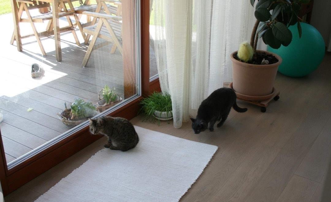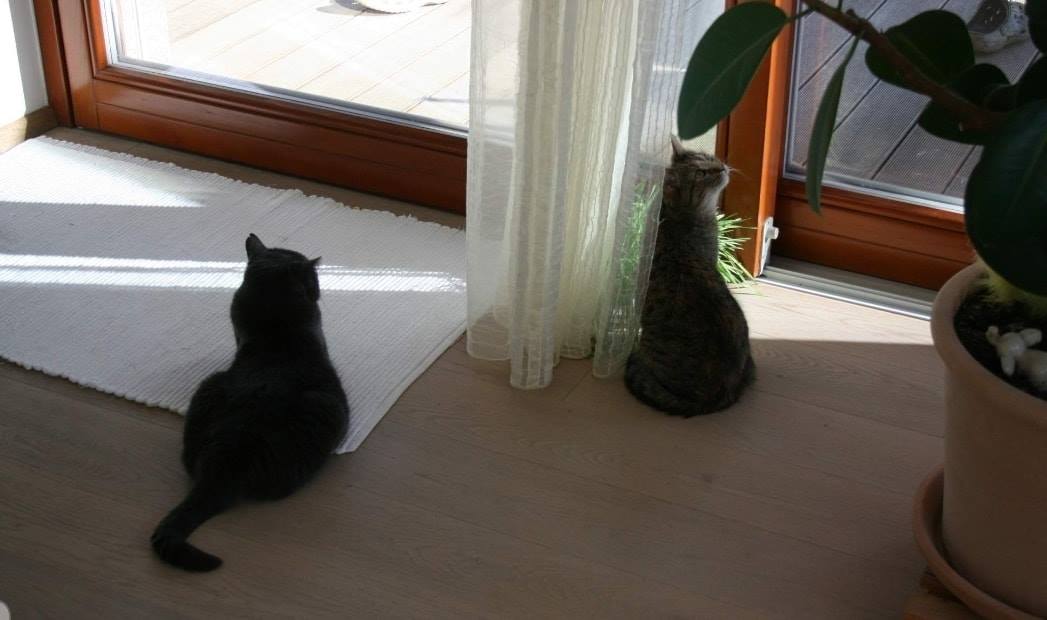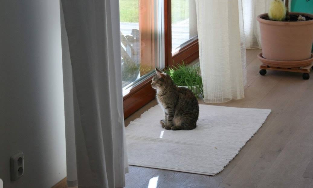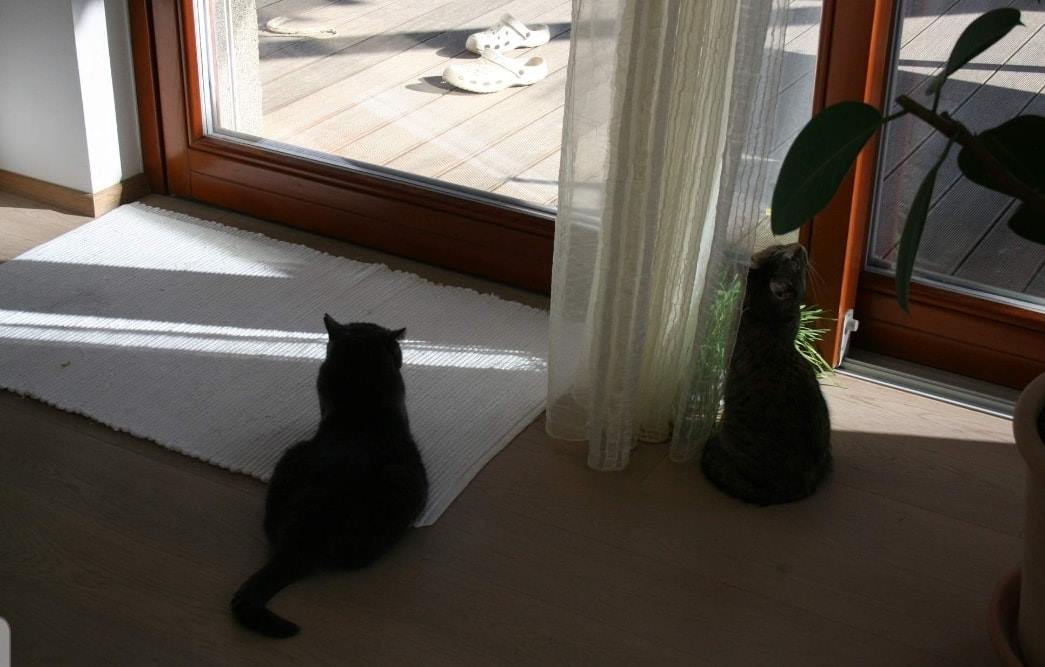 Máňa je velmi zvědavá kočička, prošmejdila celý dům včetně sklepa a usadila se u francouzského okna a spokojeně se dívala na kočičí televizi.