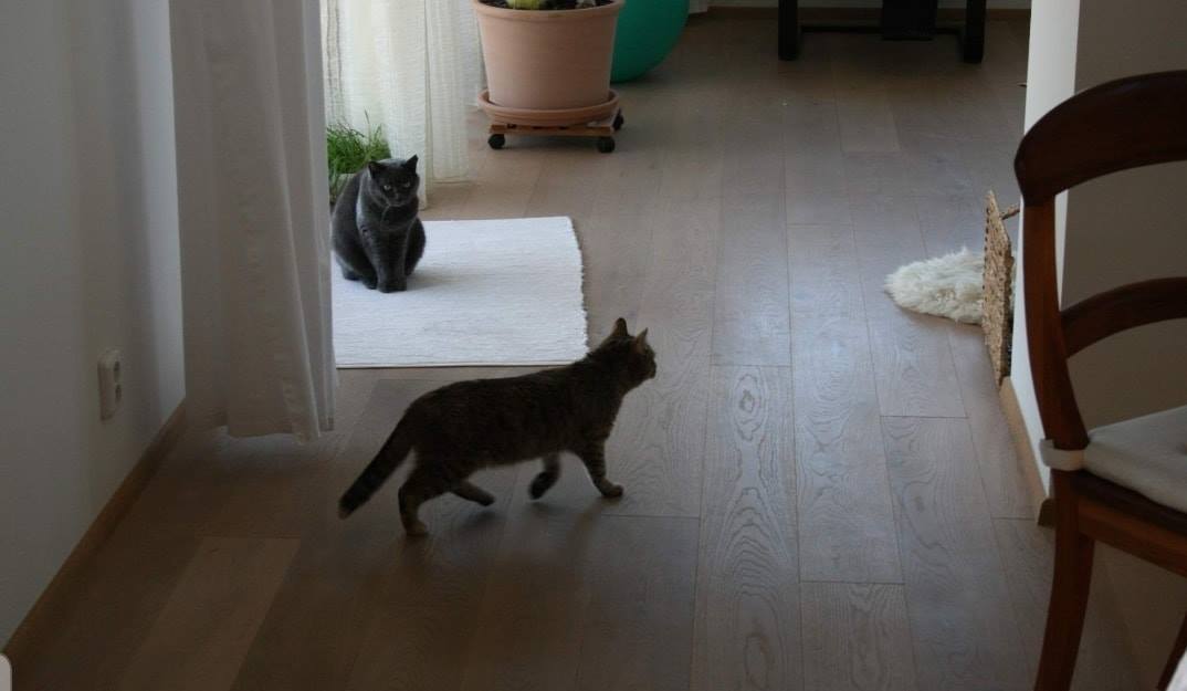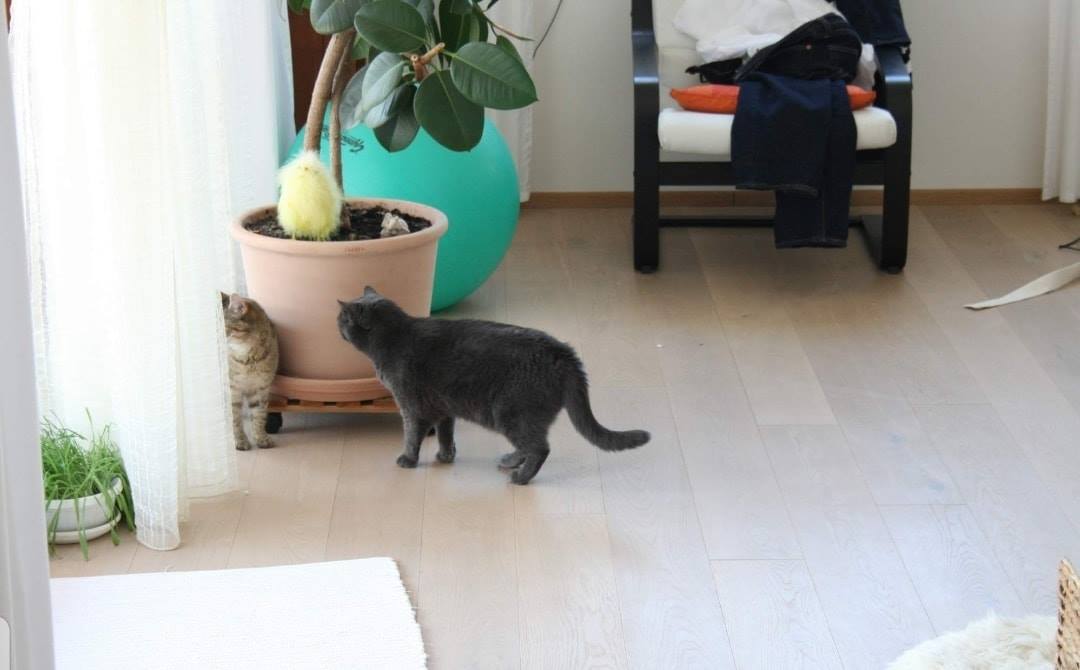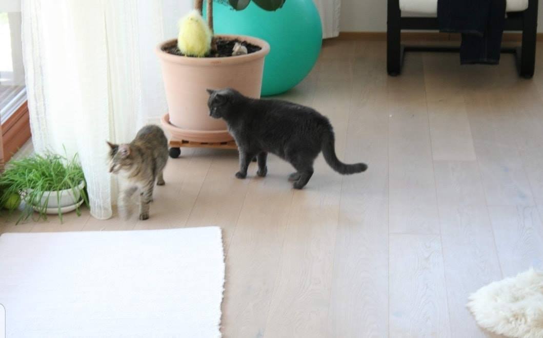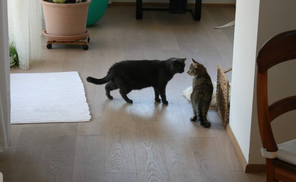 shledání s naší kočkou Elinkou dopadlo nad očekávání , obě se očuchaly a navzájem se respektují, nedošlo ani na syčení.