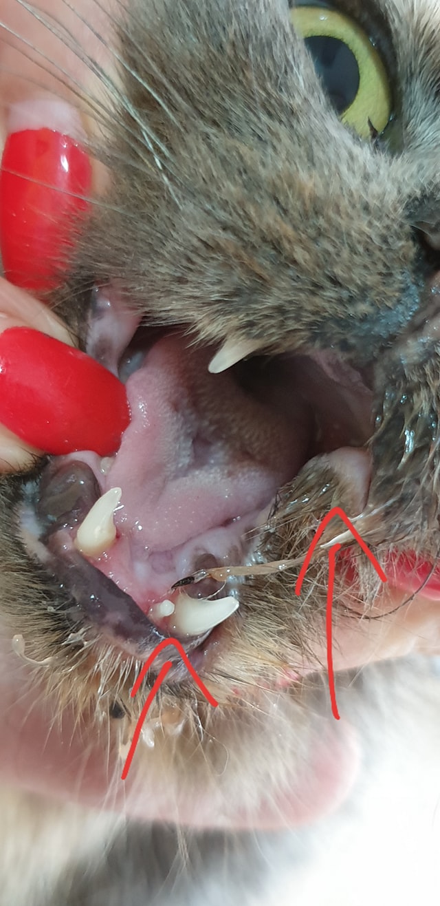 Zánět zubů, obrovský útvar v pusince ji znesnadňuji příjem stravy. Mona také abnormální sllinní.