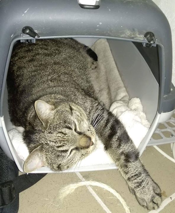 U akvária jsem ho nenacapala tak alespoň jeden provaleny víkend 😉 jak při odjezdu od Vás v přepravce protestoval teď je to jeho nejmilejší pelíšek – prostě kocour keřový 😉